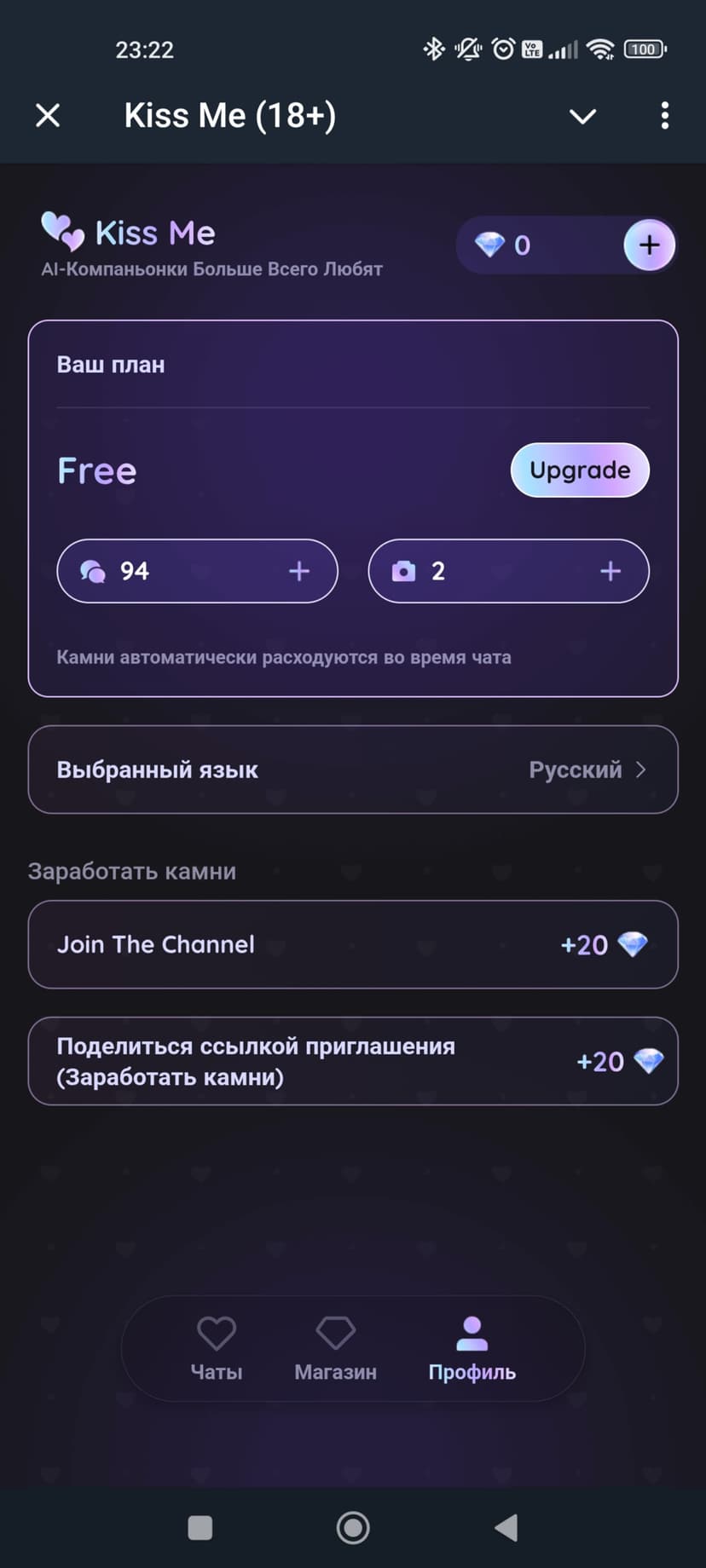 - Ежедневные задания и система достижений с начислением баллов для разблокировки фонов чата и дополнительных сообщений.