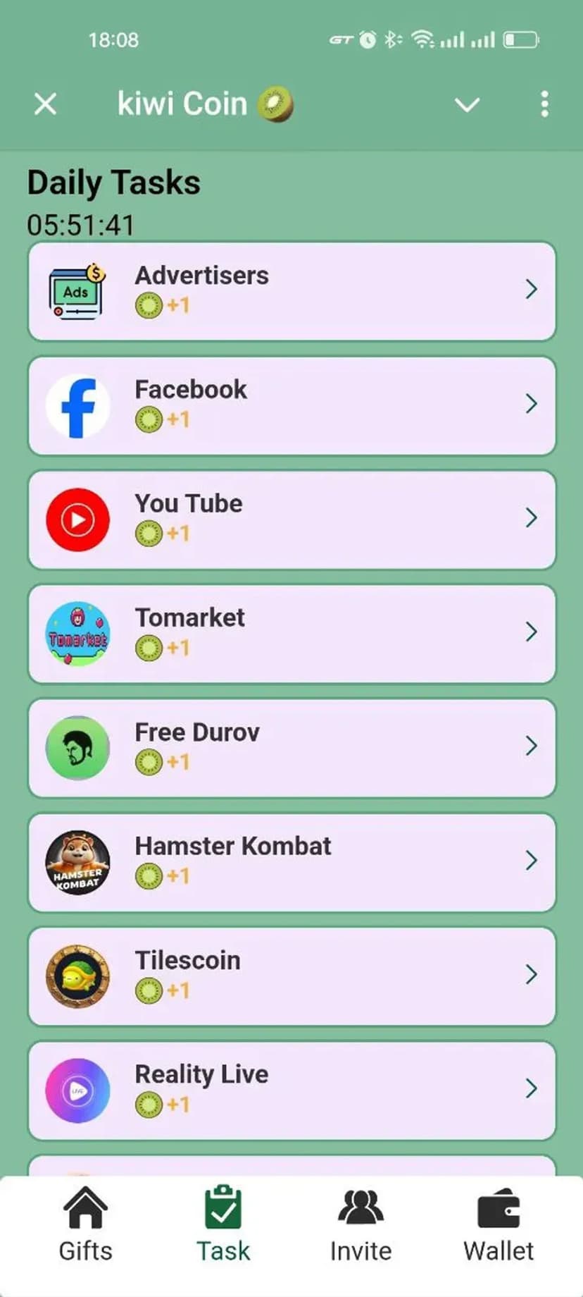 - Выполнение простых заданий для получения Kiwi Coin и дополнительных вознаграждений
