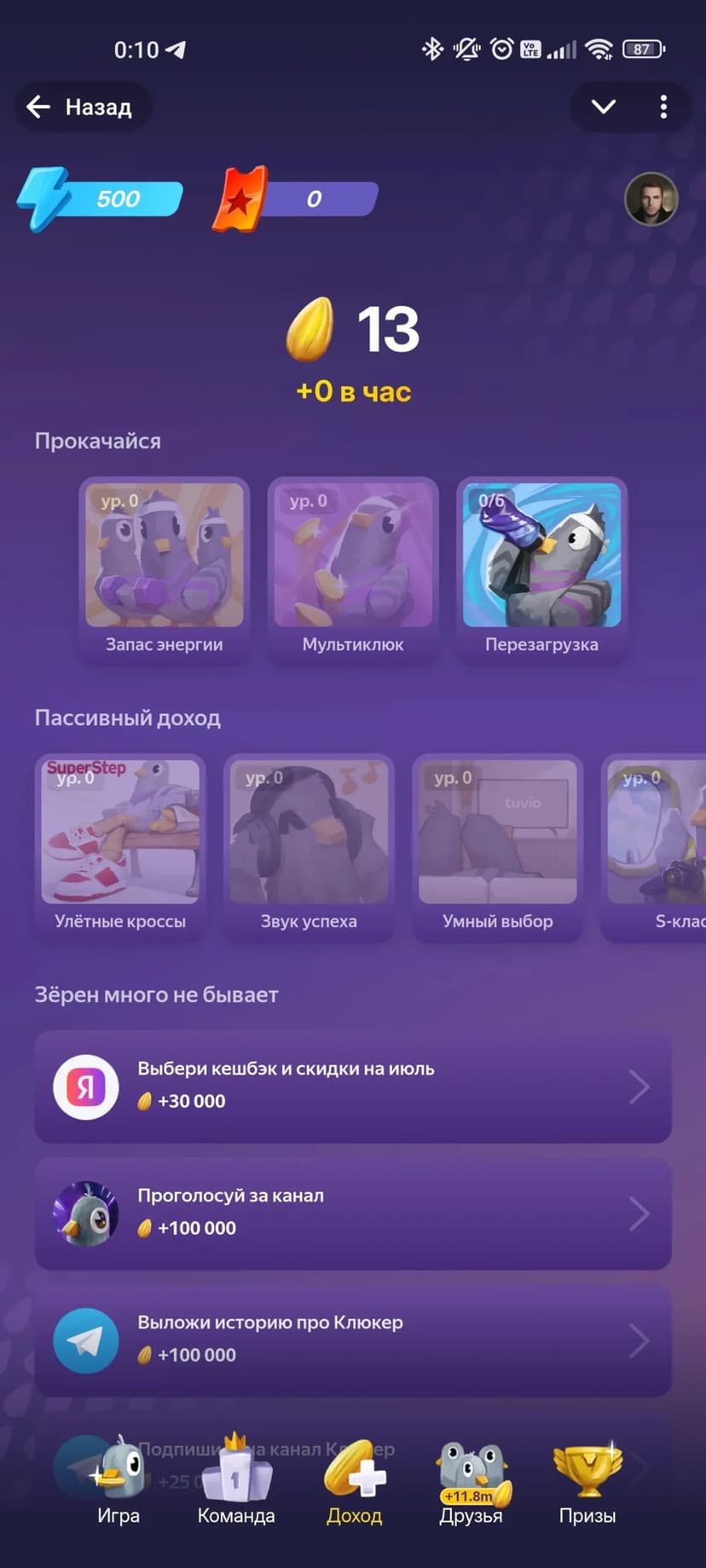 Клюкер — мини‑игра в Telegram с аудиторией более 3 миллионов пользователей. В основе — простая и затягивающая механика кликера: кликая по анимированному голубю, игроки собирают виртуальные зёрна.