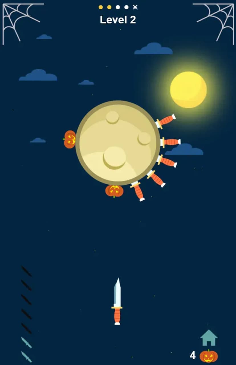 Бросайте ножи в вращающуюся мишень, избегая столкновений, препятствий и боссов