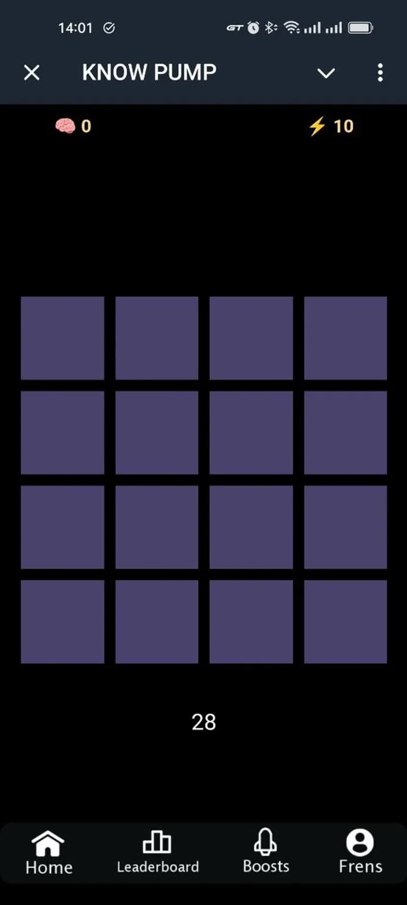 KNOW PUMP — мини‑игра на механике мемори с крипто‑ и Web3‑стилистикой. Игроки открывают карточки в поиске совпадающих пар и получают внутриигровые KP‑монеты за успешные совпадения.