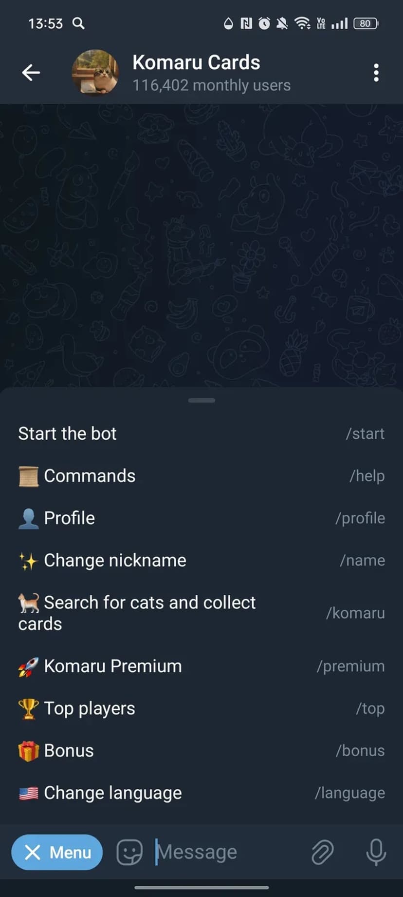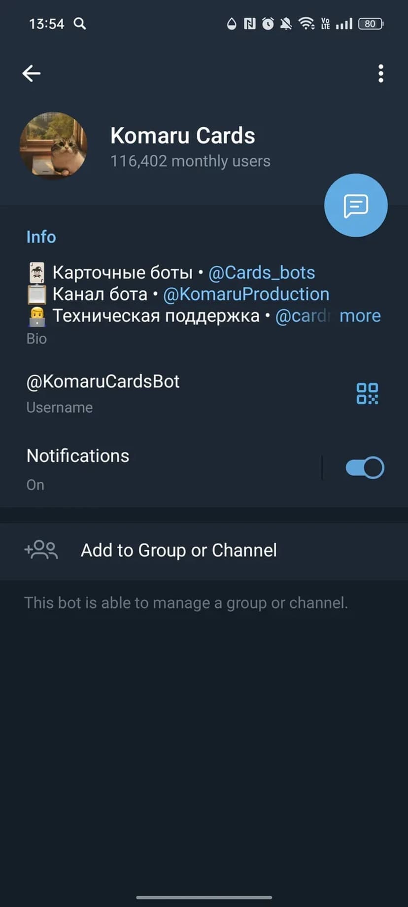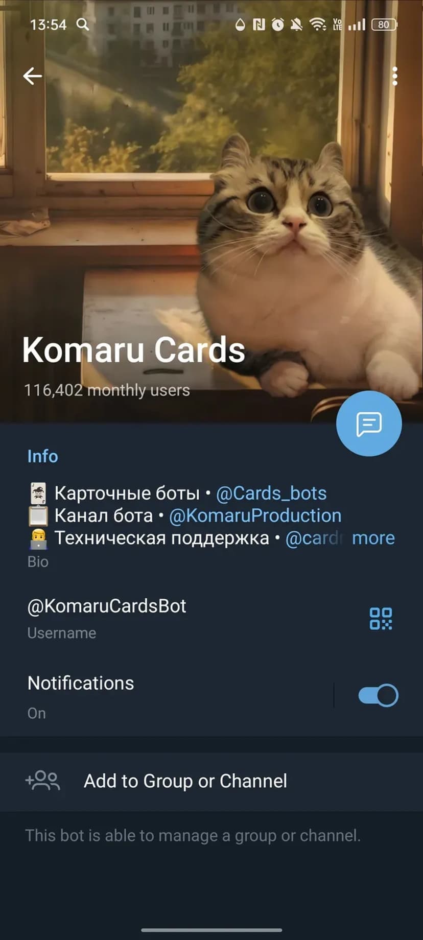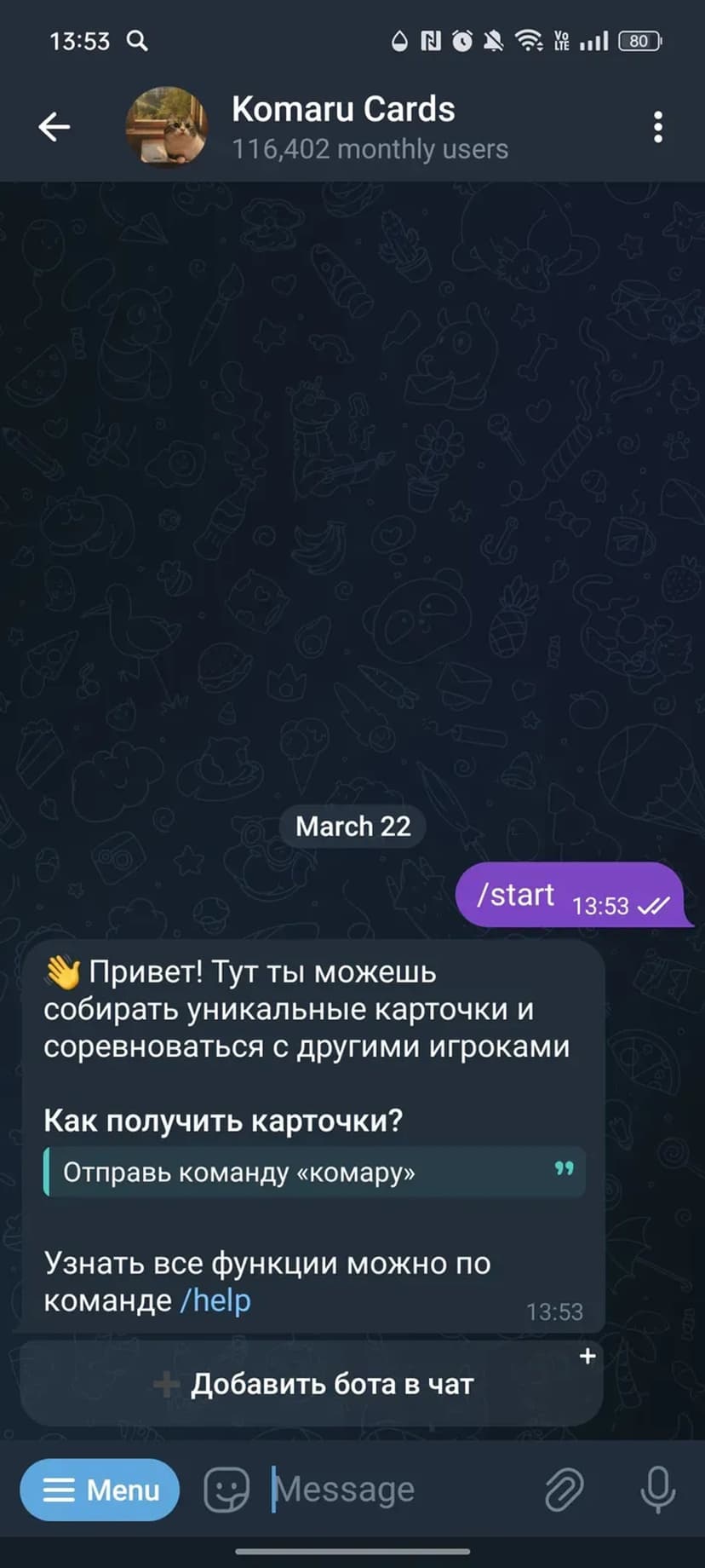 *Нажимая "Открыть в Telegram", вы перейдете к приложению Komaru Cards в мессенджере Telegram