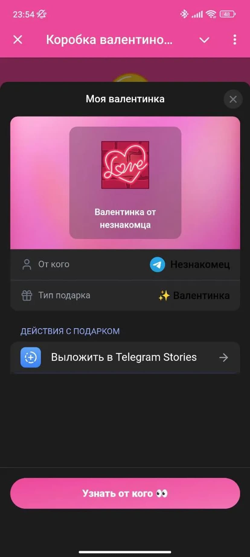 Собирай анонимные валентинки в личной коробке и получай шанс на Telegram Gift