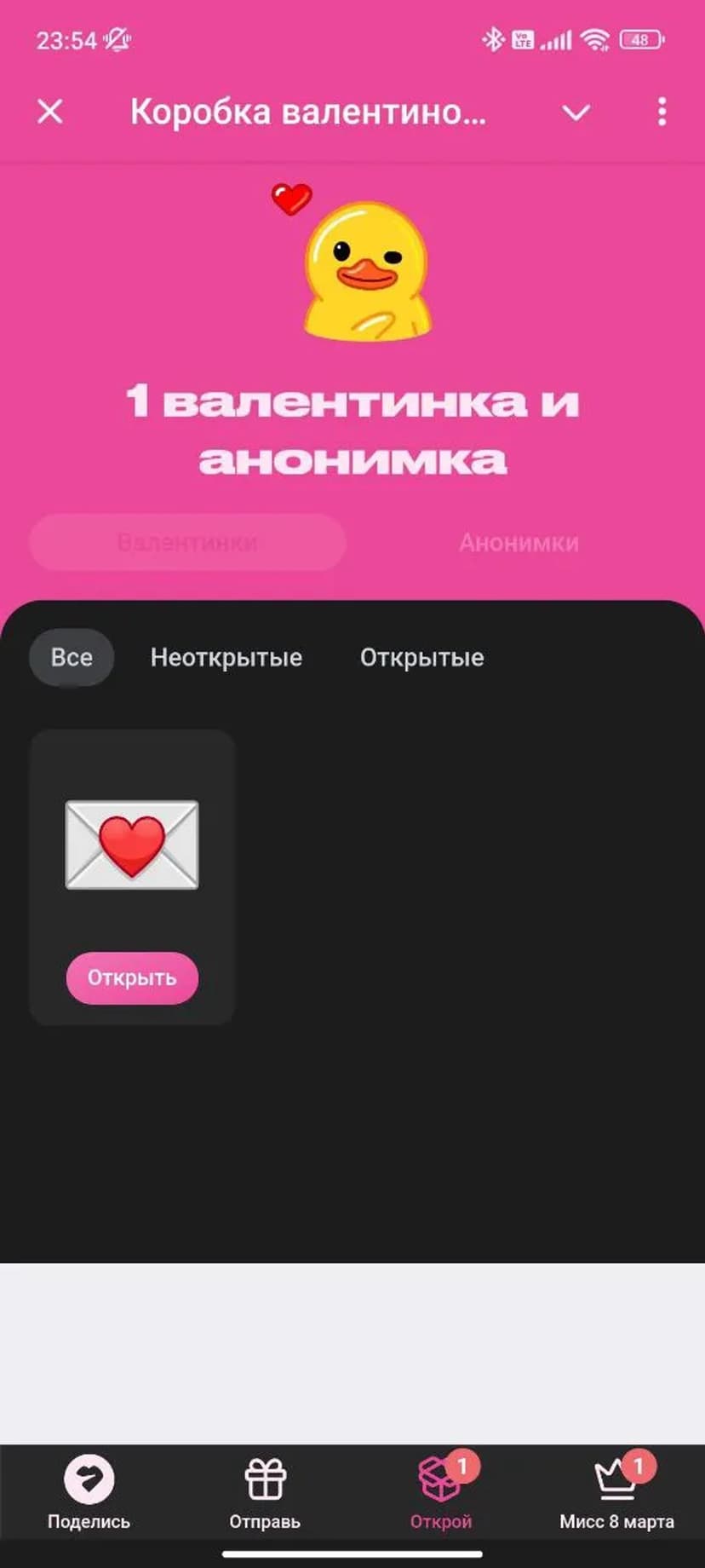 *Нажимая "Открыть в Telegram", вы перейдете к приложению Коробка анонимок в мессенджере Telegram