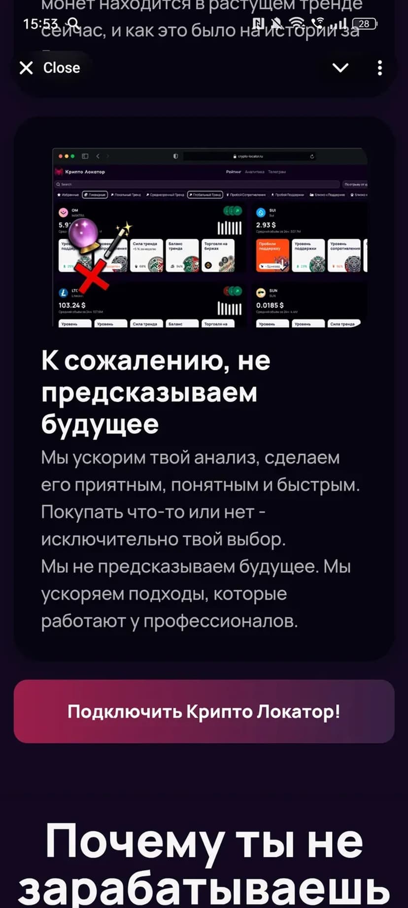 *Нажимая "Открыть в Telegram", вы перейдете к приложению Крипто Локатор Бот в мессенджере Telegram