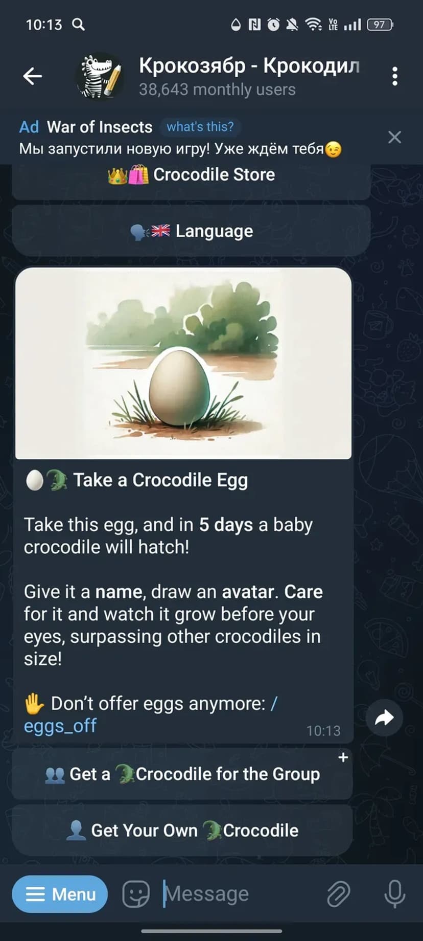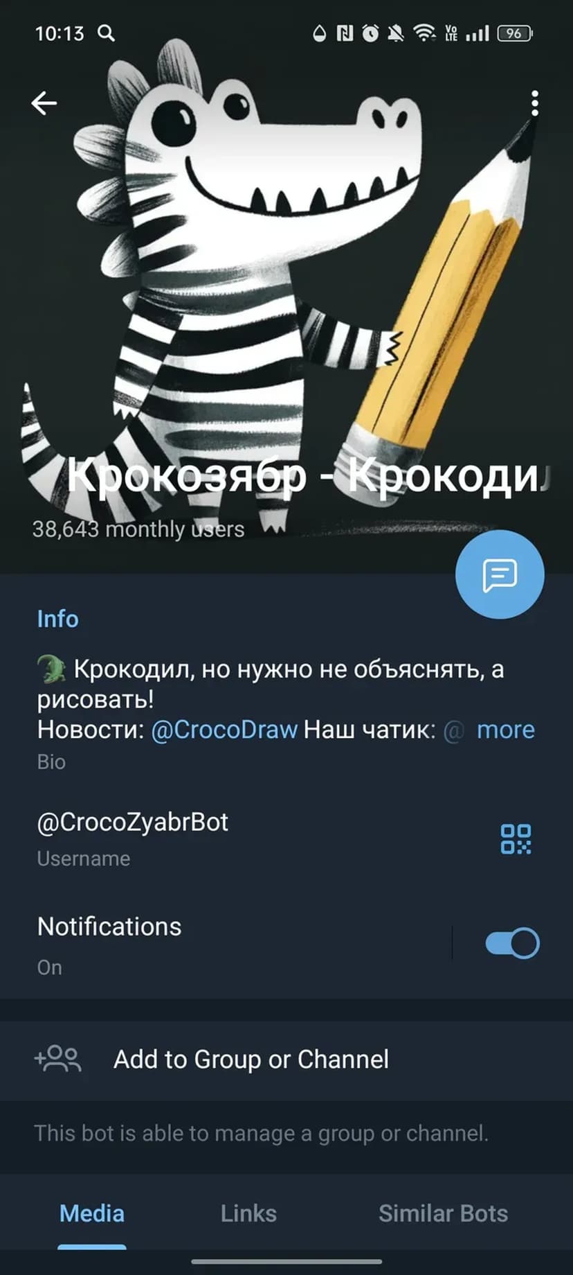*Нажимая "Открыть в Telegram", вы перейдете к приложению Крокозябр - Крокодил с рисунками! в мессенджере Telegram