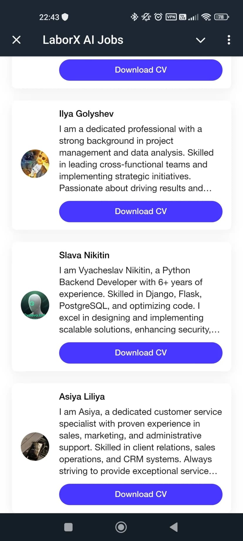 - Ежедневное обновление базы вакансий и интеграция с сообществом в Telegram.