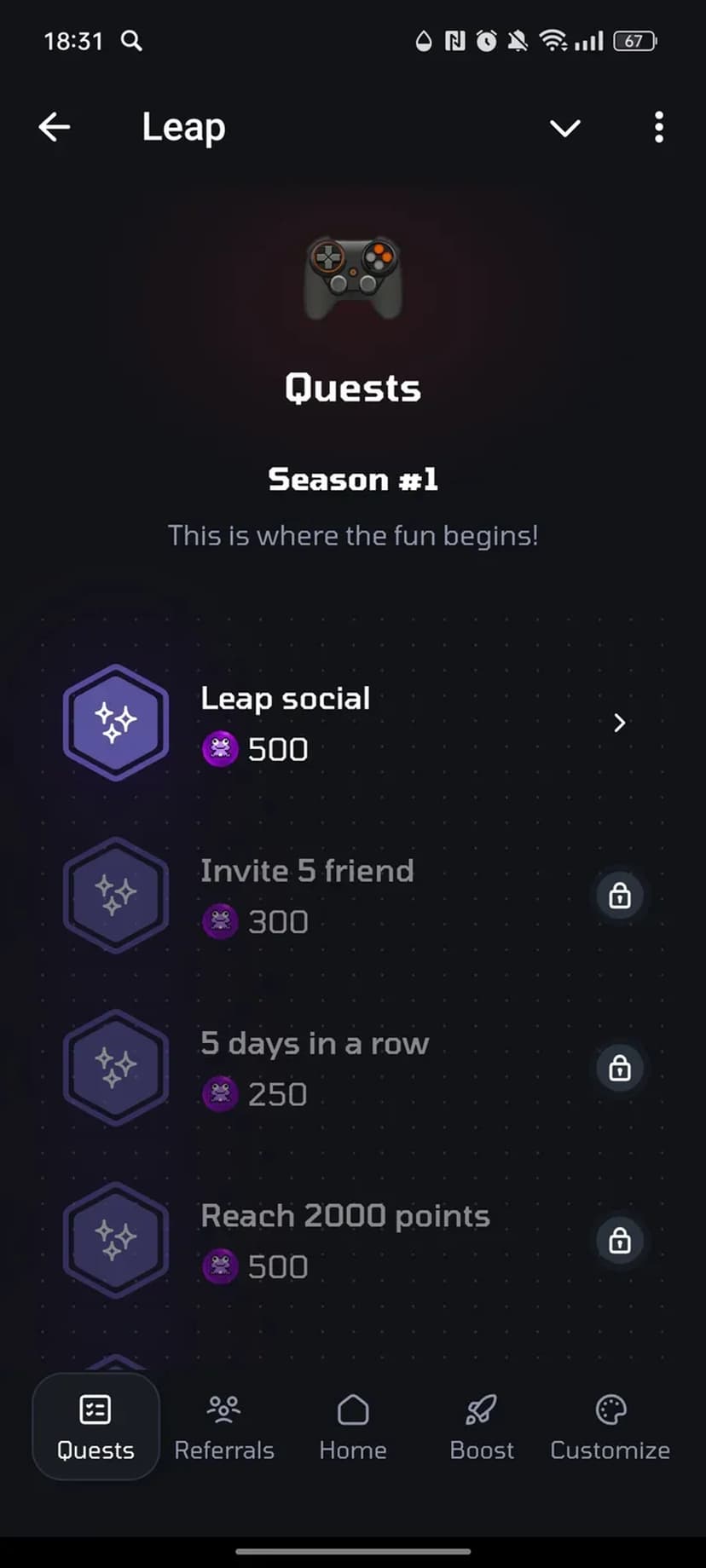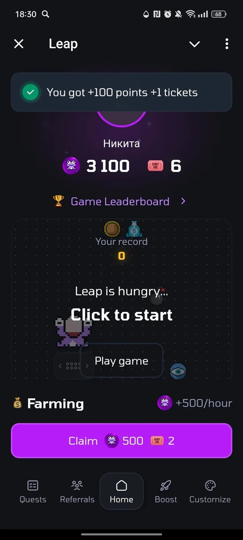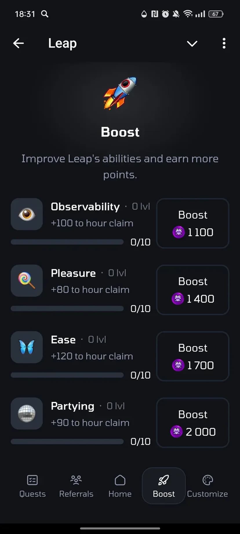 Leap предлагает изучать блокчейн и криптотехнологии через геймифицированные задания: квесты, мини‑игры и челленджи с друзьями. За выполнение активностей начисляются внутриигровые баллы — Leaps, которые служат показателем прогресса и мотивации.