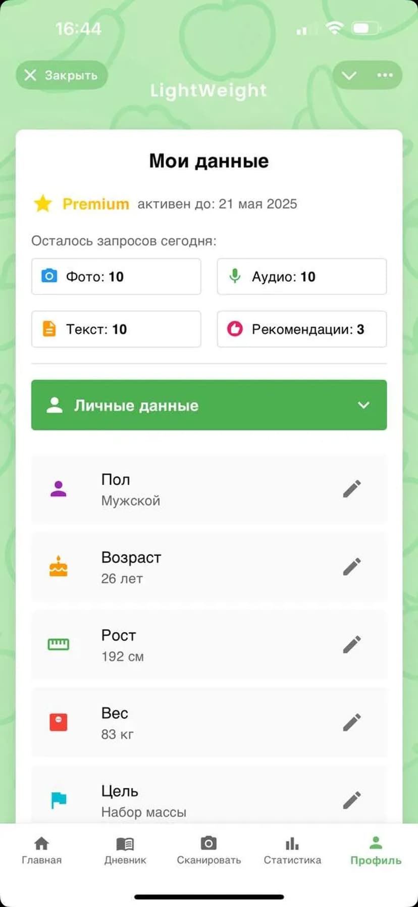 - Плюсы: быстрый анализ по фото и тексту, персонализированные рекомендации, подробная статистика.