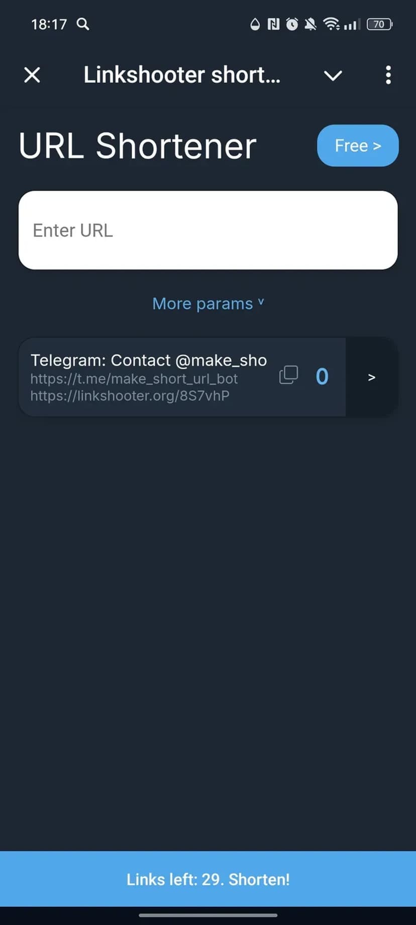 - Мгновенное сокращение: получайте короткий URL на основе отправленной длинной ссылки.