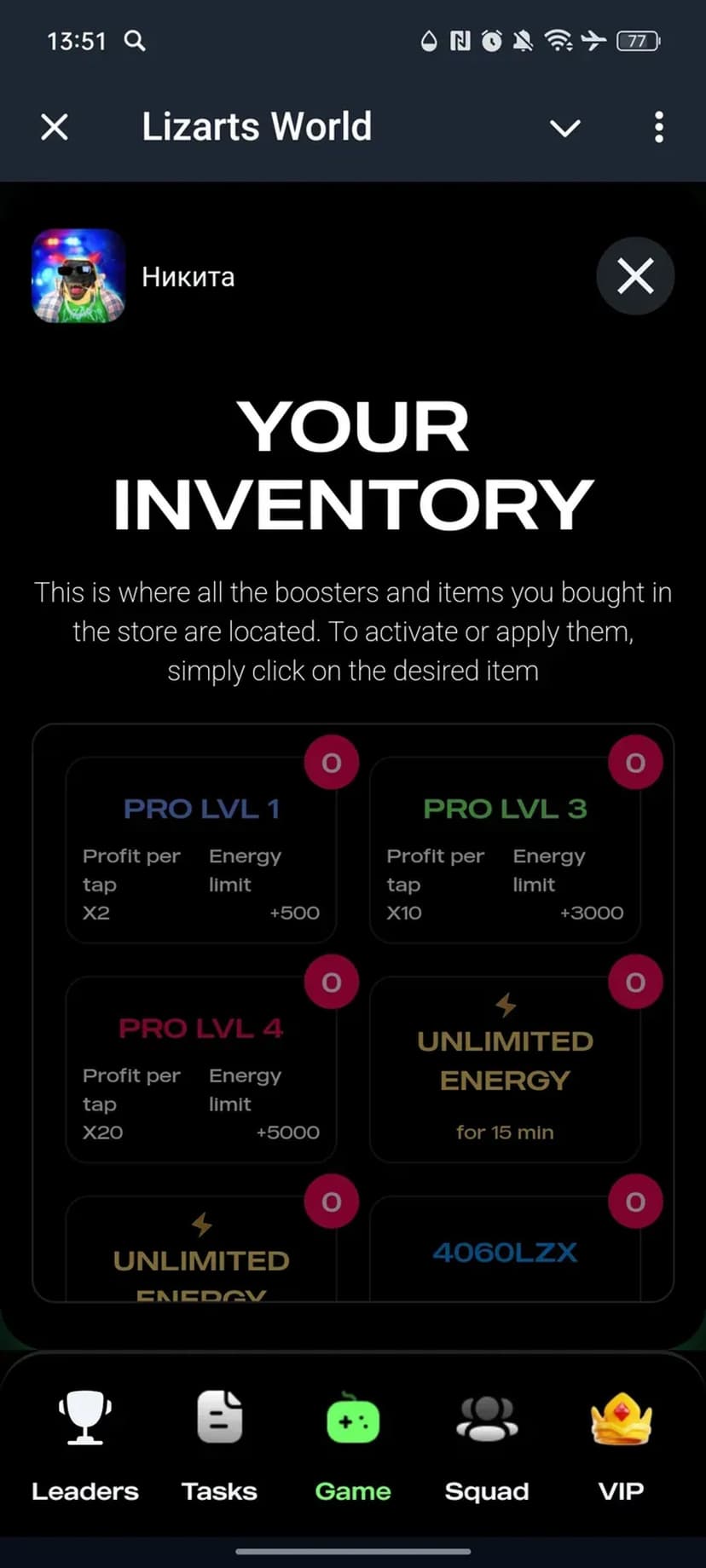 *Нажимая "Открыть в Telegram", вы перейдете к приложению Lizarts World в мессенджере Telegram