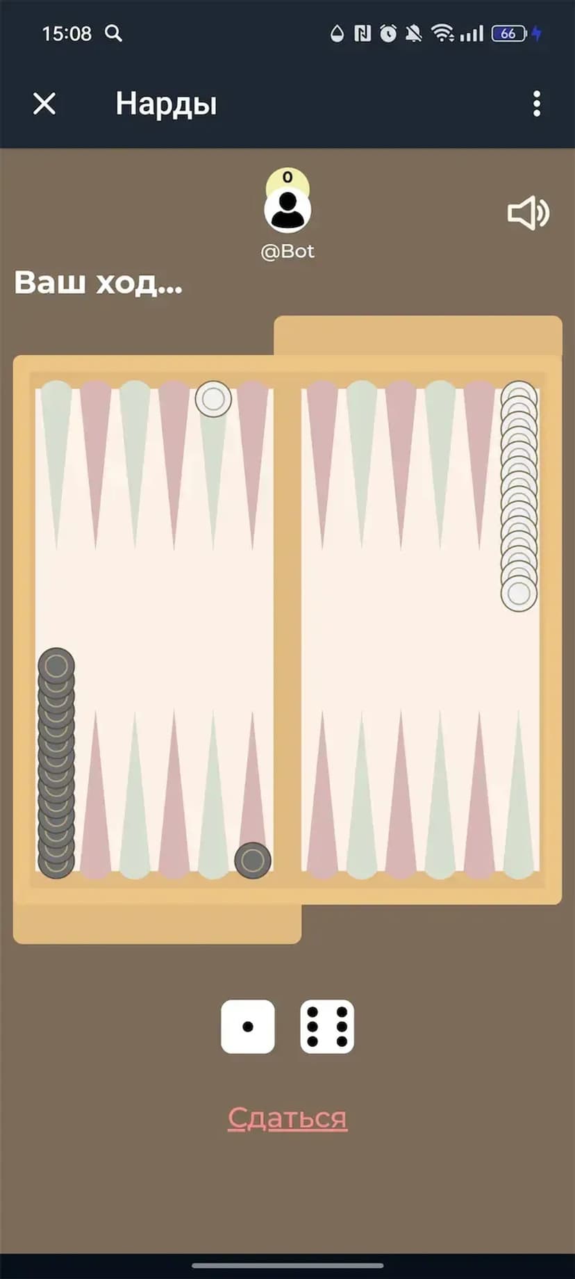 - Игровые режимы: PvP с людьми и партия против бота.