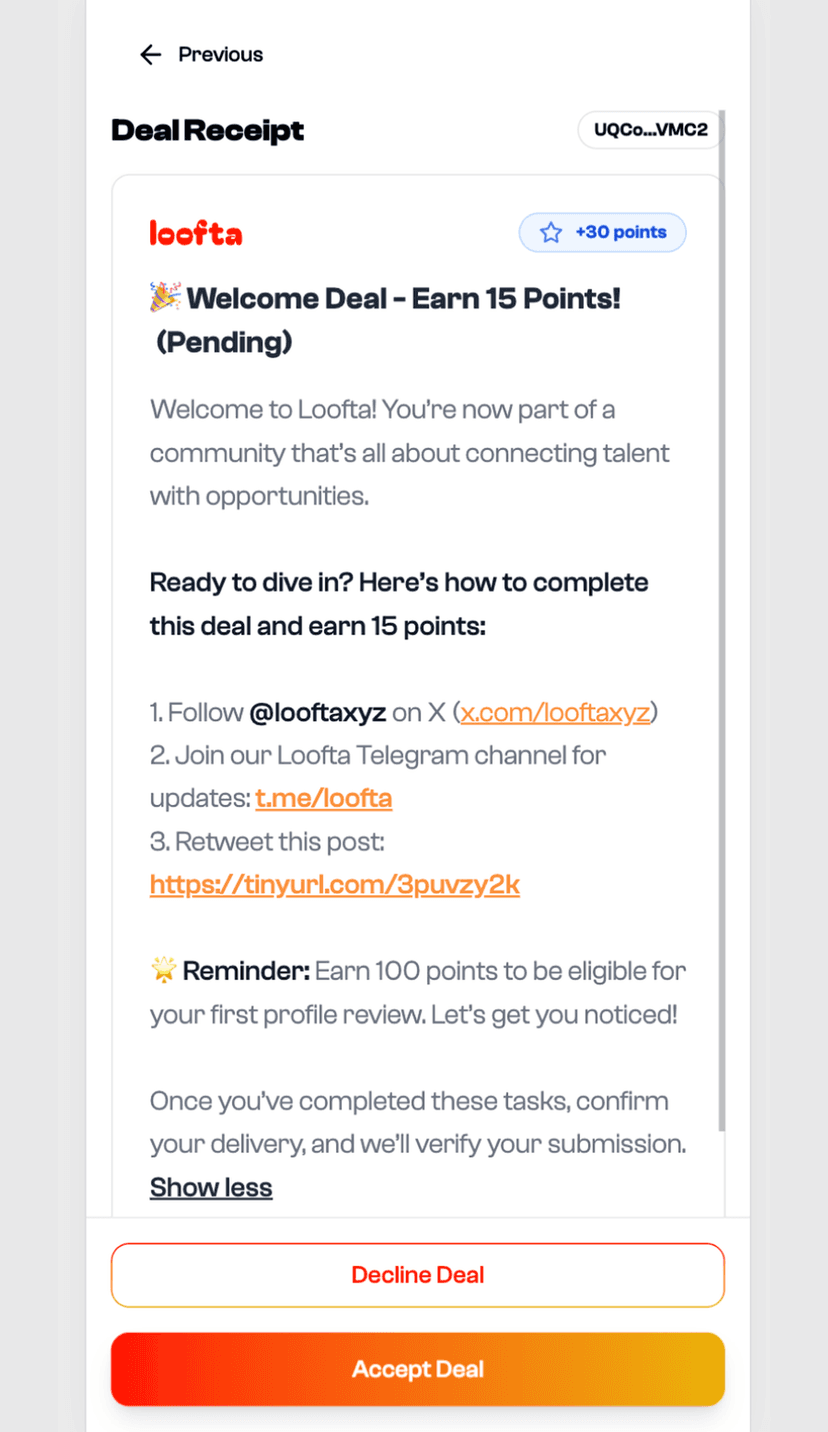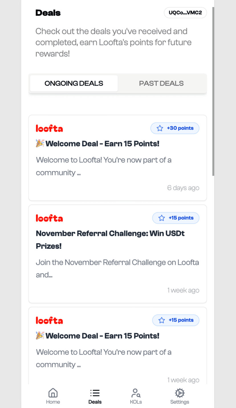 loofta помогает креаторам, инфлюенсерам и участникам Web3 выполнять верифицированные кампании и монетизировать свою активность. За выполнение условий задания пользователи получают вознаграждение в USDT или накопительные баллы, пригодные для будущих airdrop.