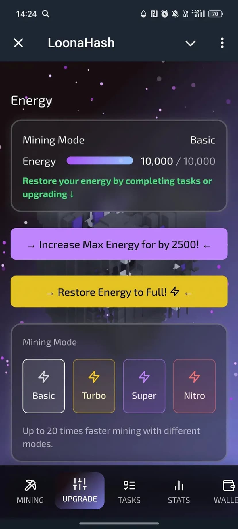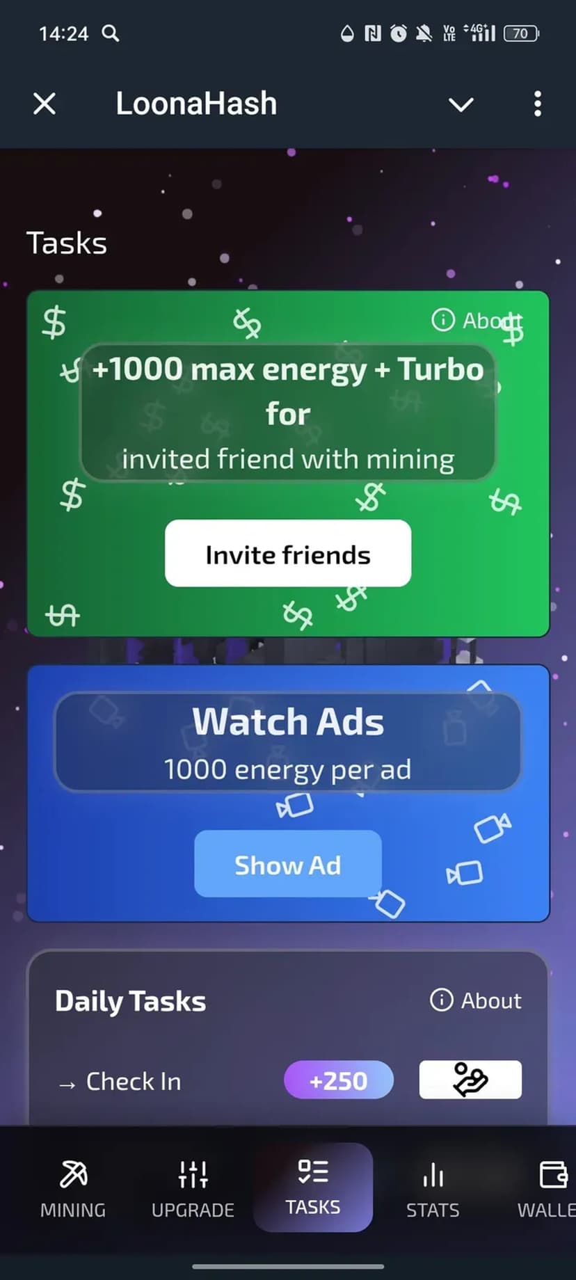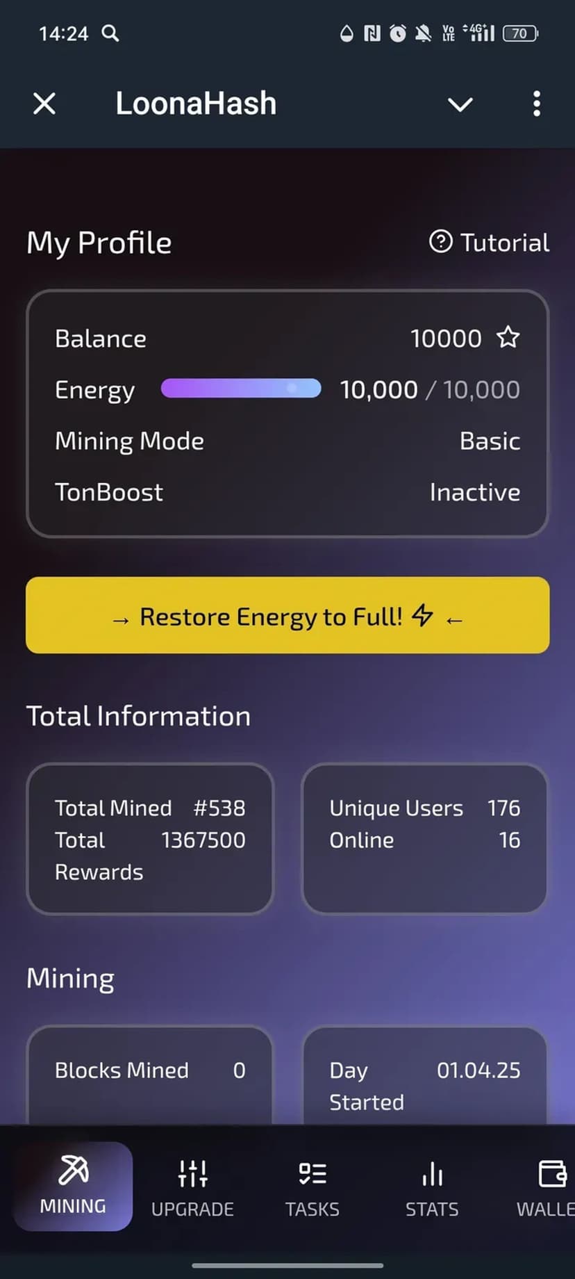 LoonaHash — облачный сервис майнинга токенов через Telegram, ориентированный на мобильные устройства. Все тяжёлые вычисления и начисления выполняются на сервере, что снижает нагрузку на смартфон и исключает необходимость устанавливать дополнительное ПО.