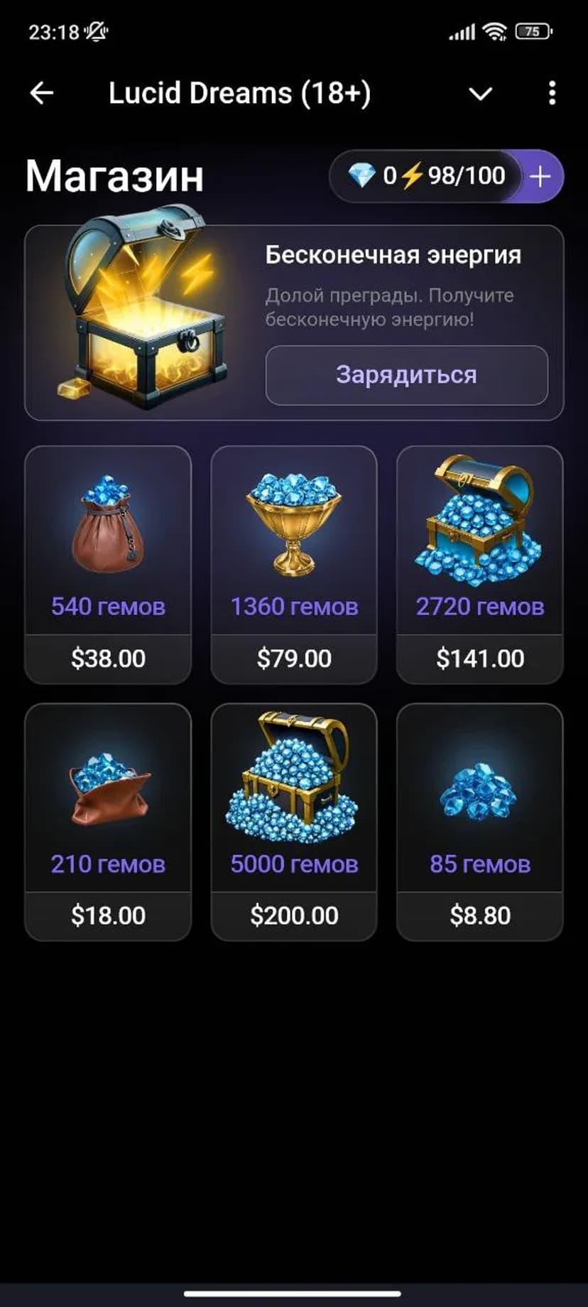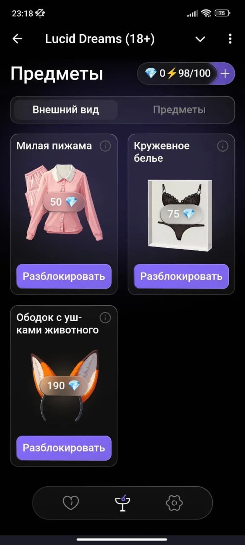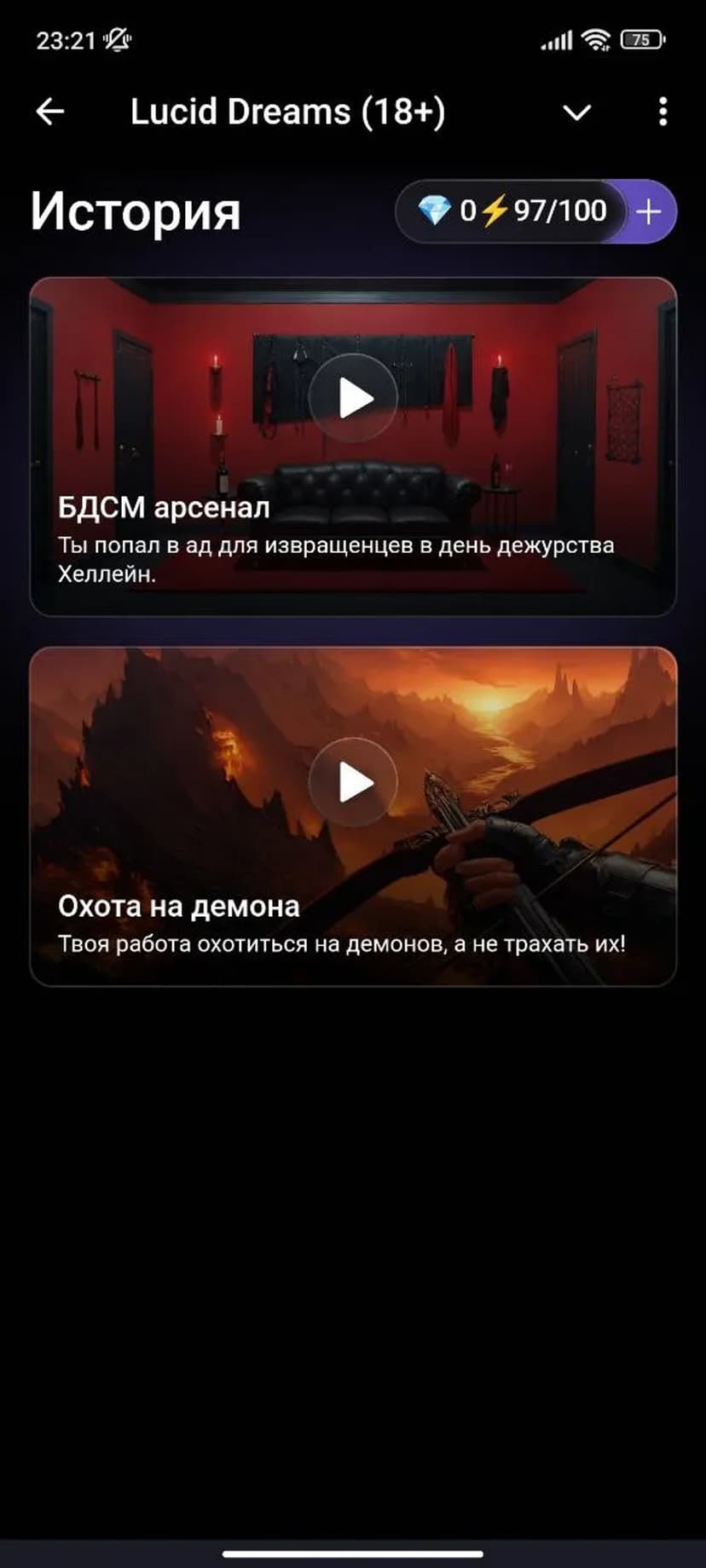 Lucid Dreams — фэнтези-опыт в формате AI-чата для аудитории 18+. Игроки общаются с уникальными виртуальными персонажами, каждый из которых имеет собственный характер и предысторию; сюжет и диалоги адаптируются под ваши ответы.