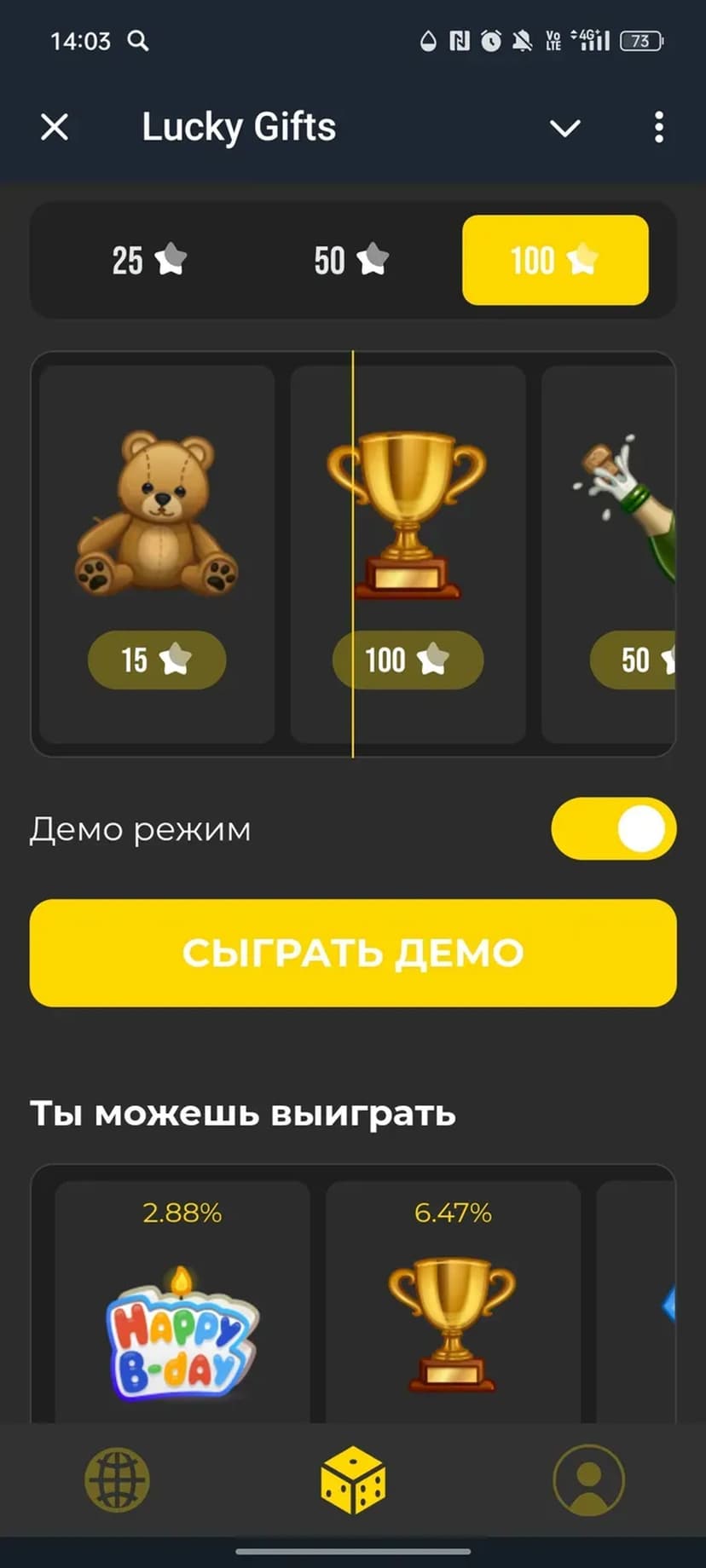 - Как это работает: вы оплачиваете небольшую ставку или используете «звезды» — внутреннюю валюту — и получаете шанс выиграть приз.