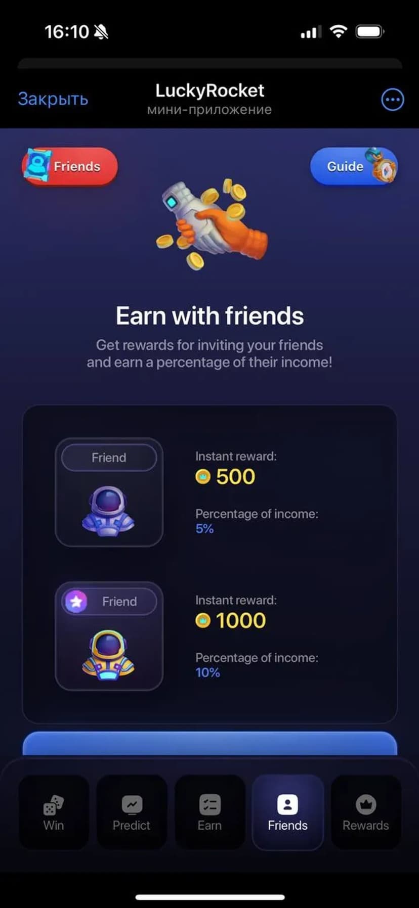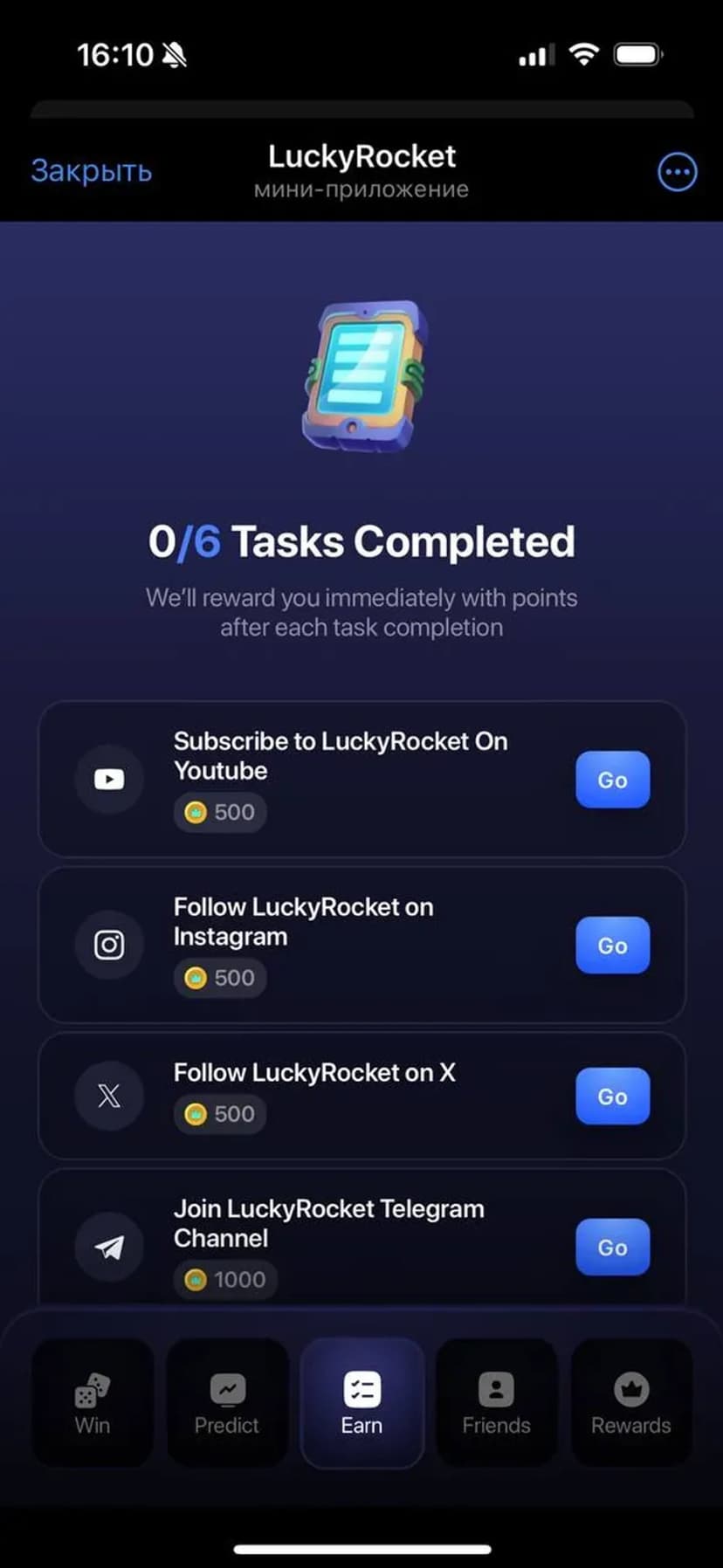 *Нажимая "Открыть в Telegram", вы перейдете к приложению LuckyRocket в мессенджере Telegram