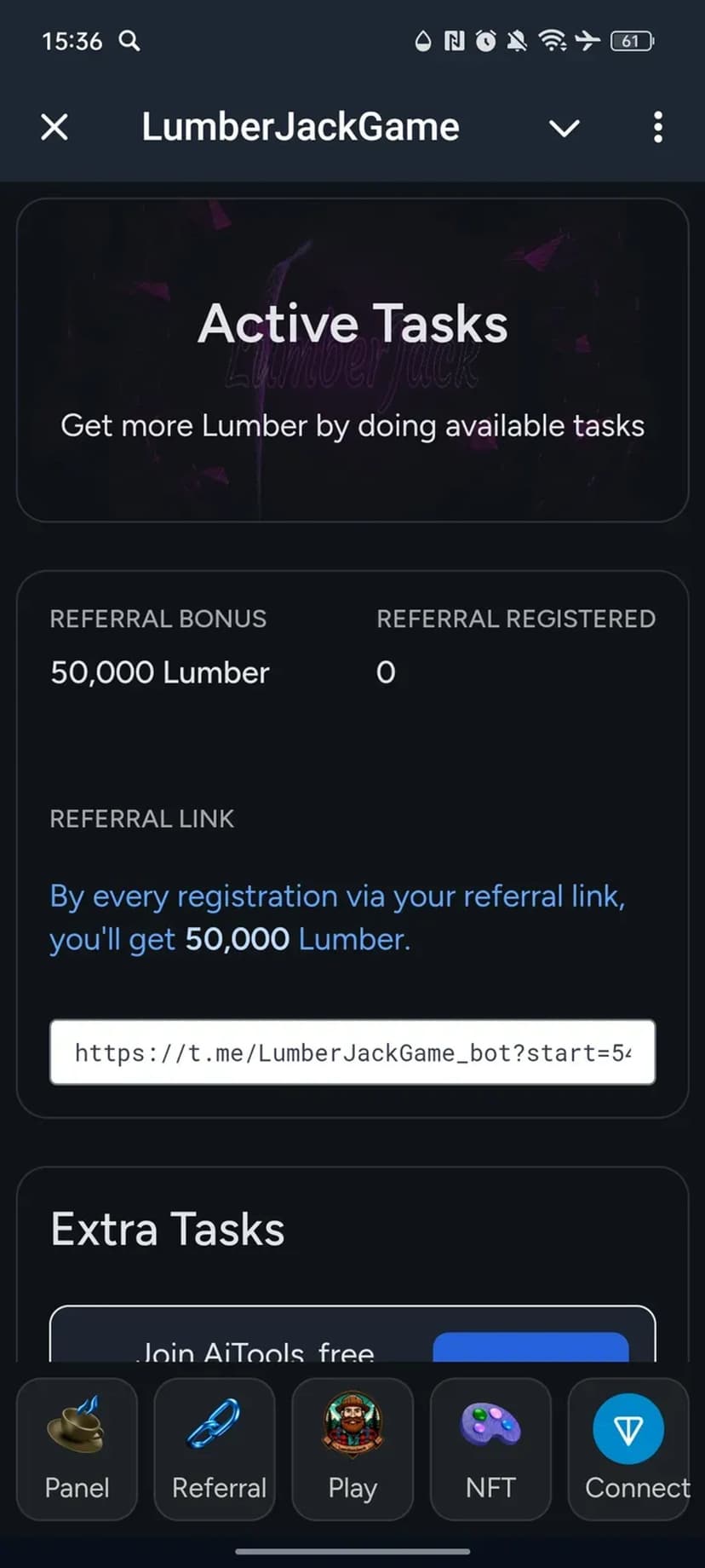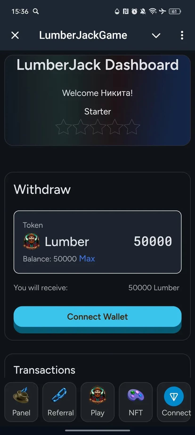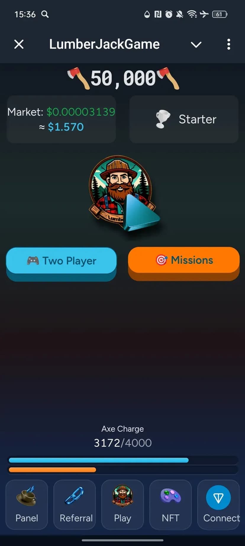 LumberJackGame — Play‑To‑Earn игра, где игровая экономика и распределение токенов встроены в механику. Взаимодействие полностью организовано через специализированного Telegram‑бота, без необходимости установки дополнительных программ.