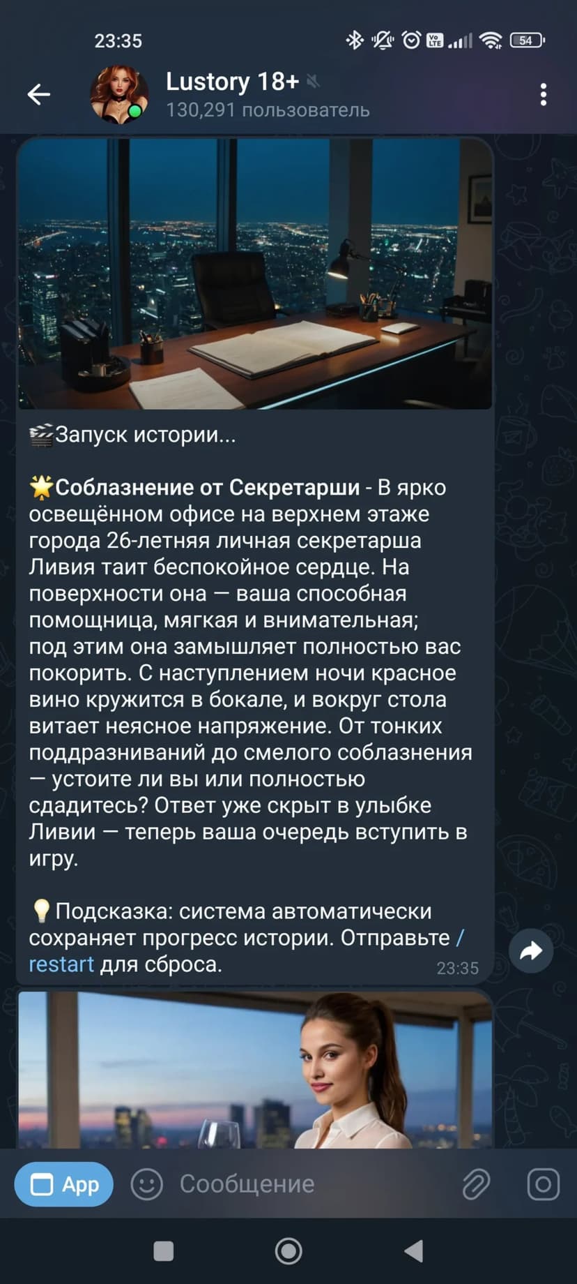 *Нажимая "Открыть в Telegram", вы перейдете к приложению Lustory в мессенджере Telegram