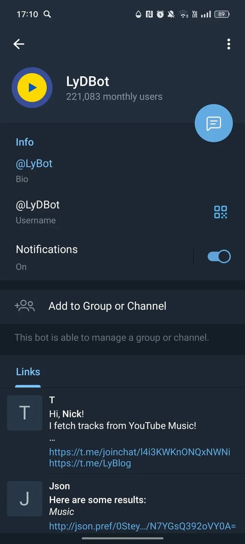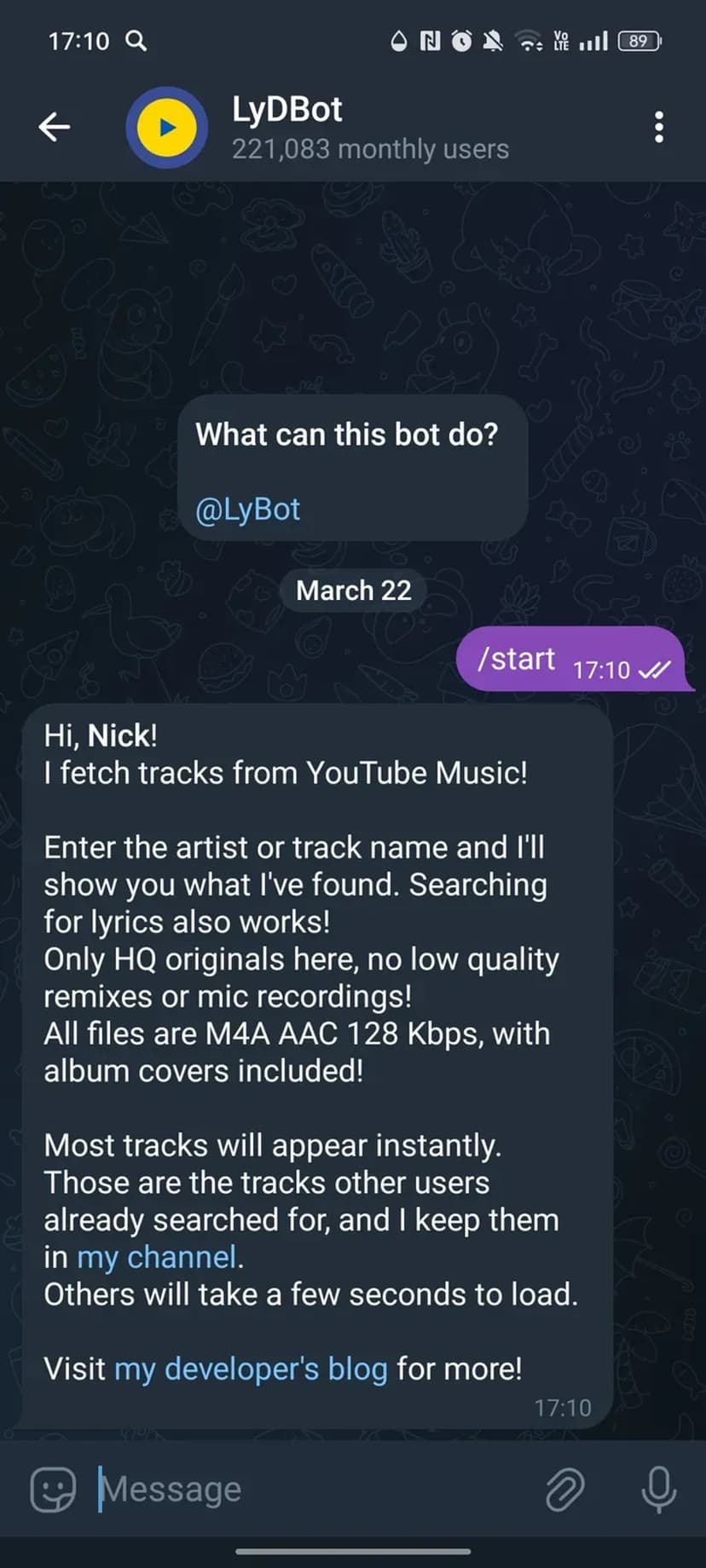 - Ограничения: бот не воспроизводит музыку и не поддерживает загрузку аудиофайлов — его задача только поиск информации и текстов.