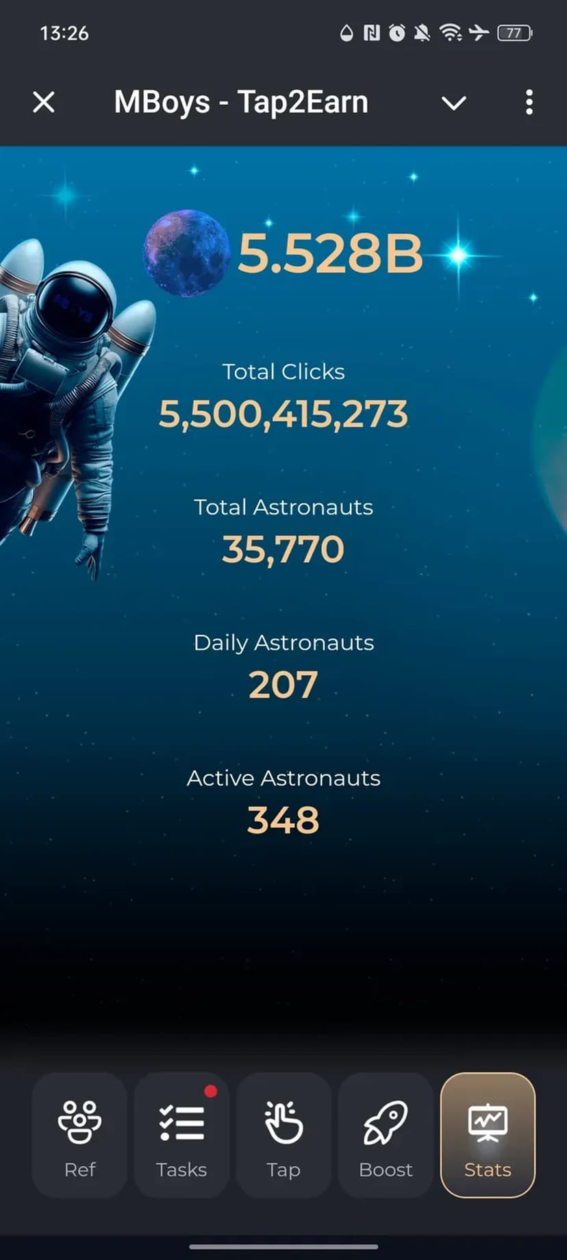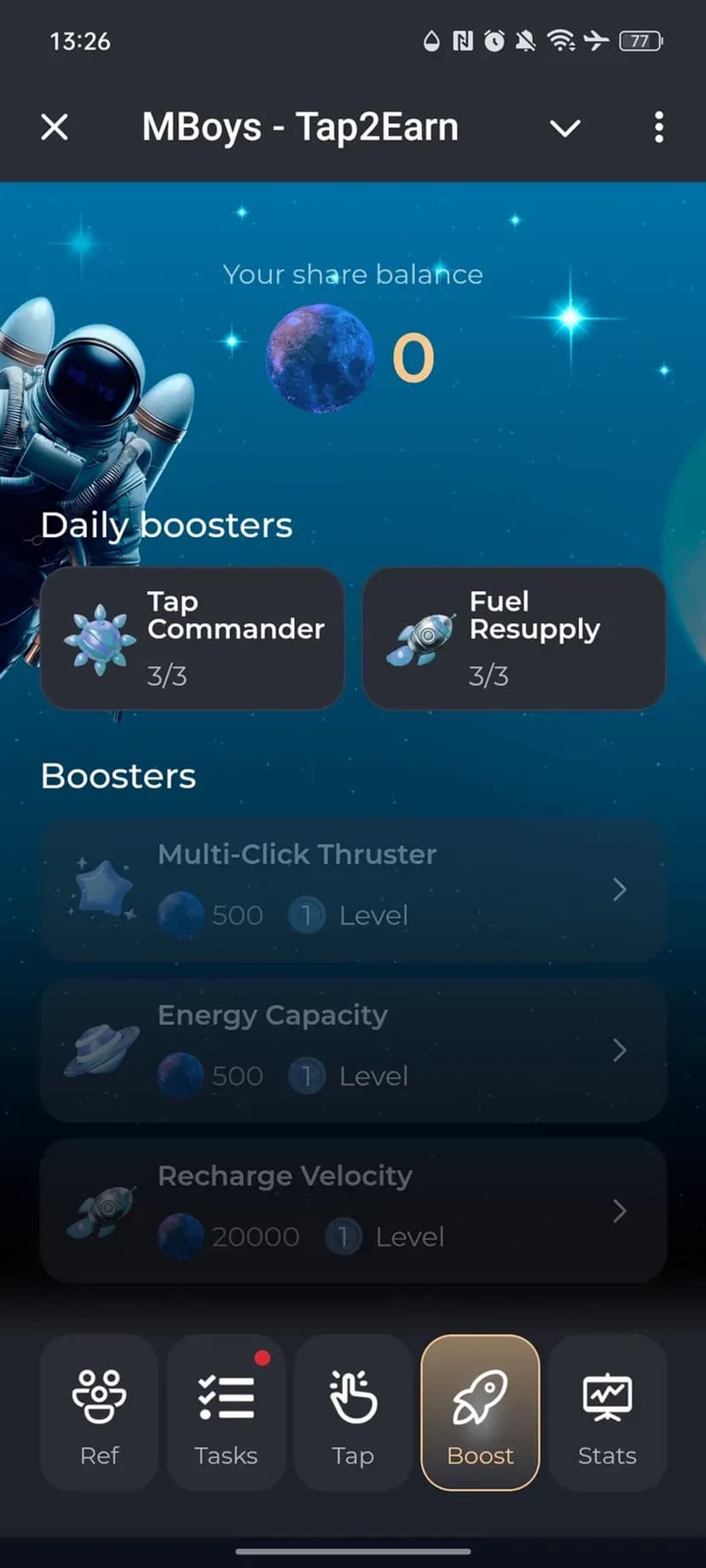 MBoys — Tap2Earn предлагает простую механнику заработка: каждый тап по изображению монеты увеличивает ваш внутриигровой баланс. Помимо индивидуального накопления предусмотрена реферальная система, которая даёт дополнительные бонусы и ускоряет сбор TAPS‑токенов.