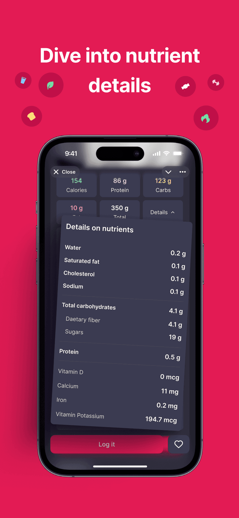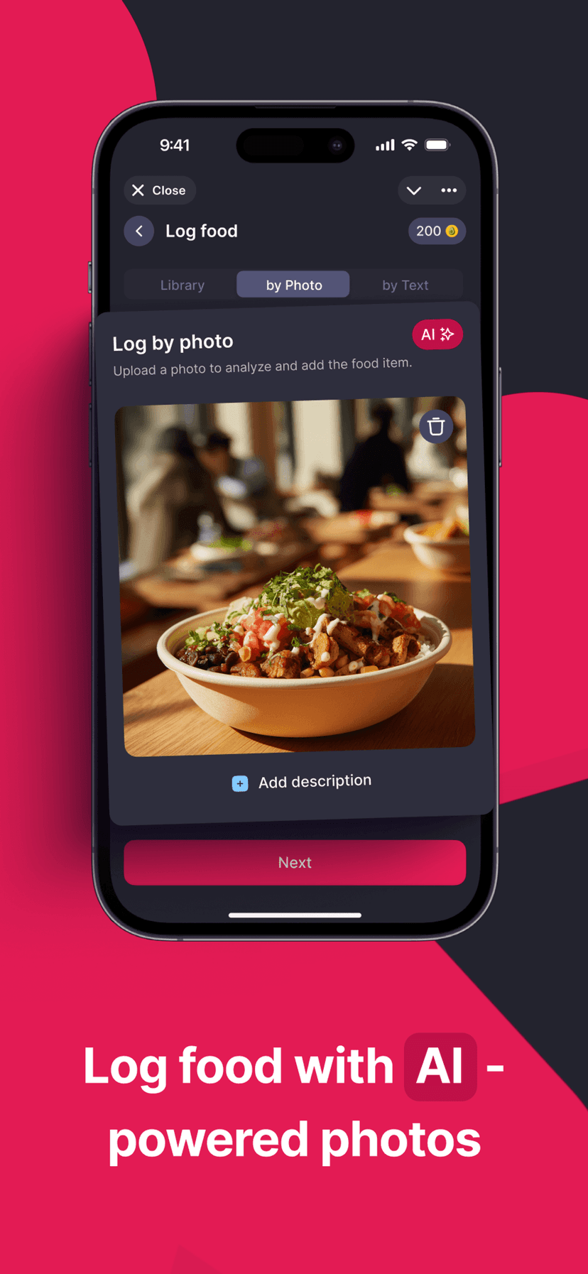 - Загрузка фотографии блюда и автоматический расчёт калорийности и макроэлементов с помощью искусственного интеллекта.