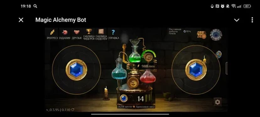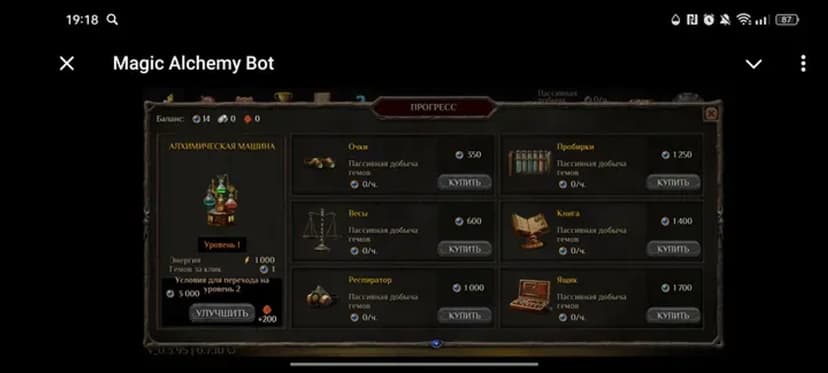 Magic Alchemy Bot — фэнтезийная кликер‑игра с криптоэкономикой: собирайте гемы и улучшайте алхимическое оборудование, чтобы повышать шансы на получение внутриигрового токена $POTION. Игра разработана для новичков: базовые криптоконцепции подаются через геймификацию.