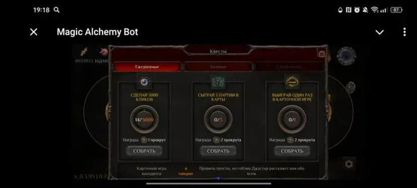 В последних обновлениях добавлены новые квесты и расширен функционал Alchemania. Усилена защита данных: игровые транзакции шифруются, а история действий хранится только на сервере и не публикуется в открытых каналах.