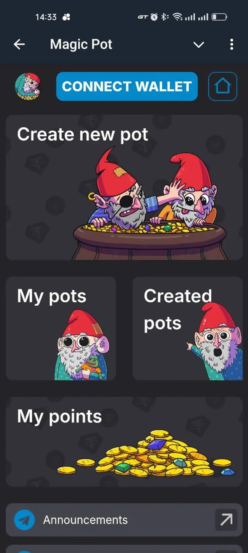 Magic Pot позволяет формировать виртуальные тайники (stash/pot) с криптотокенами и организовывать их распределение между участниками. Вы задаёте правила раздачи, приглашаете людей, а система автоматически информирует участников о статусе ставок и итогах.