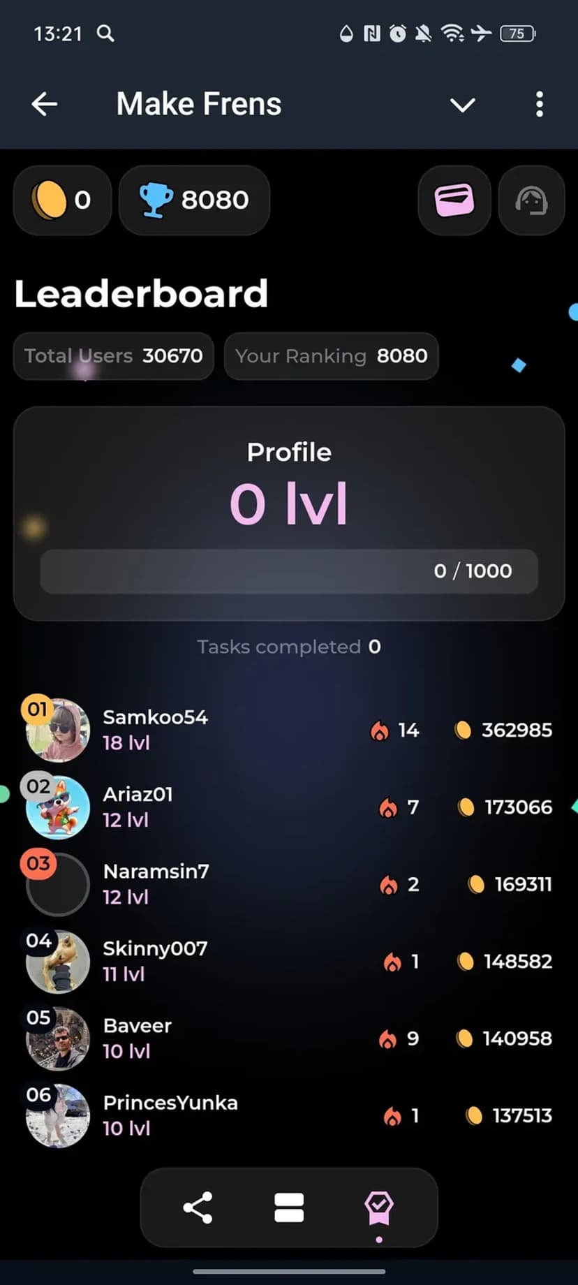 Make Frens — сервис в Telegram, который позволяет получать вознаграждение в USDT и токенах за выполнение простых квестов. Доступ к заданиям организован через бота без отдельной регистрации.