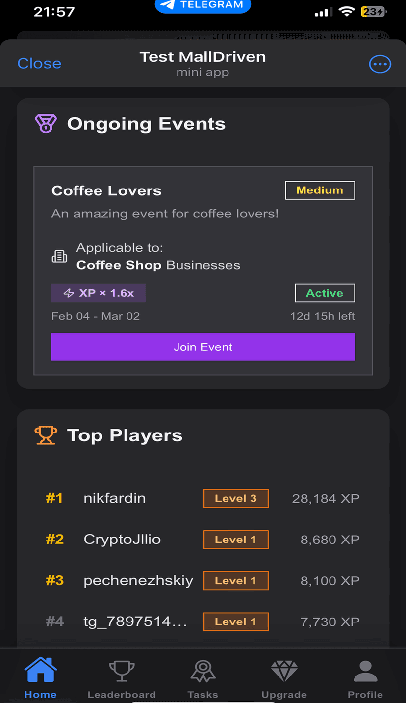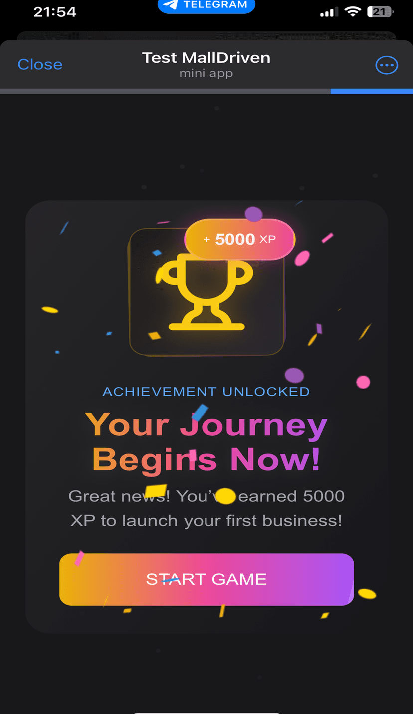 *Нажимая "Открыть в Telegram", вы перейдете к приложению MallDriven Game в мессенджере Telegram