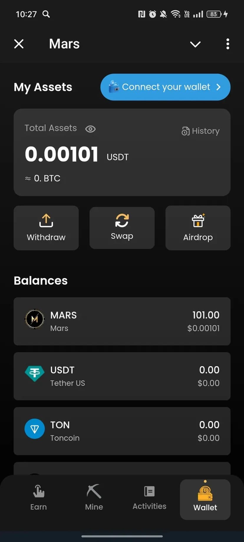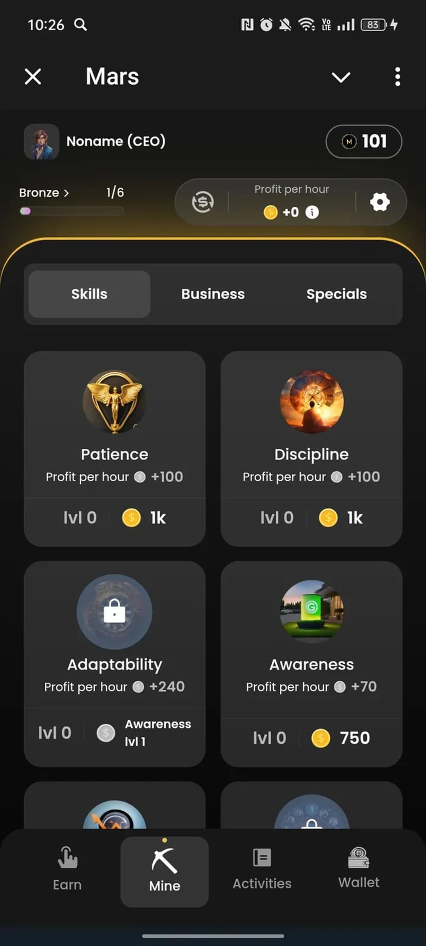 Mars — простая и динамичная кликер‑игра, где монеты зарабатываются с помощью нажатий. Собранная валюта используется для повышения эффективности добычи и получения внутриигровых бонусов.