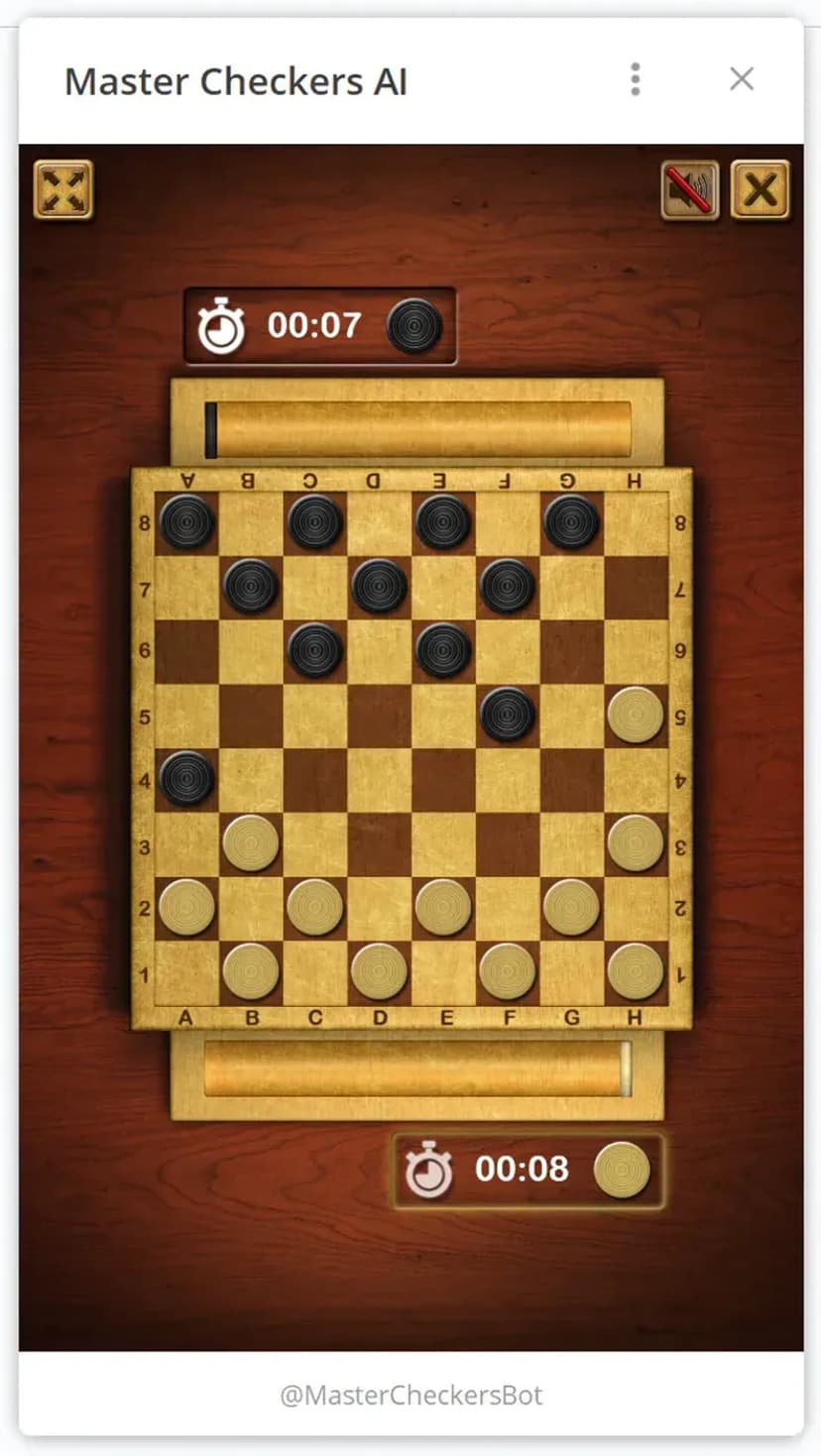 *Нажимая "Открыть в Telegram", вы перейдете к приложению Master Checkers AI в мессенджере Telegram