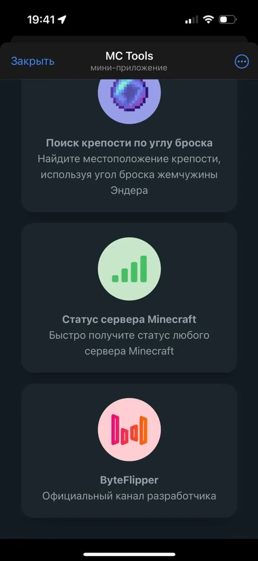 MC Tools — набор полезных утилит для игроков, администраторов серверов и картографов в Minecraft. Инструменты доступны прямо в Telegram и не требуют отдельной регистрации или установки файлов.