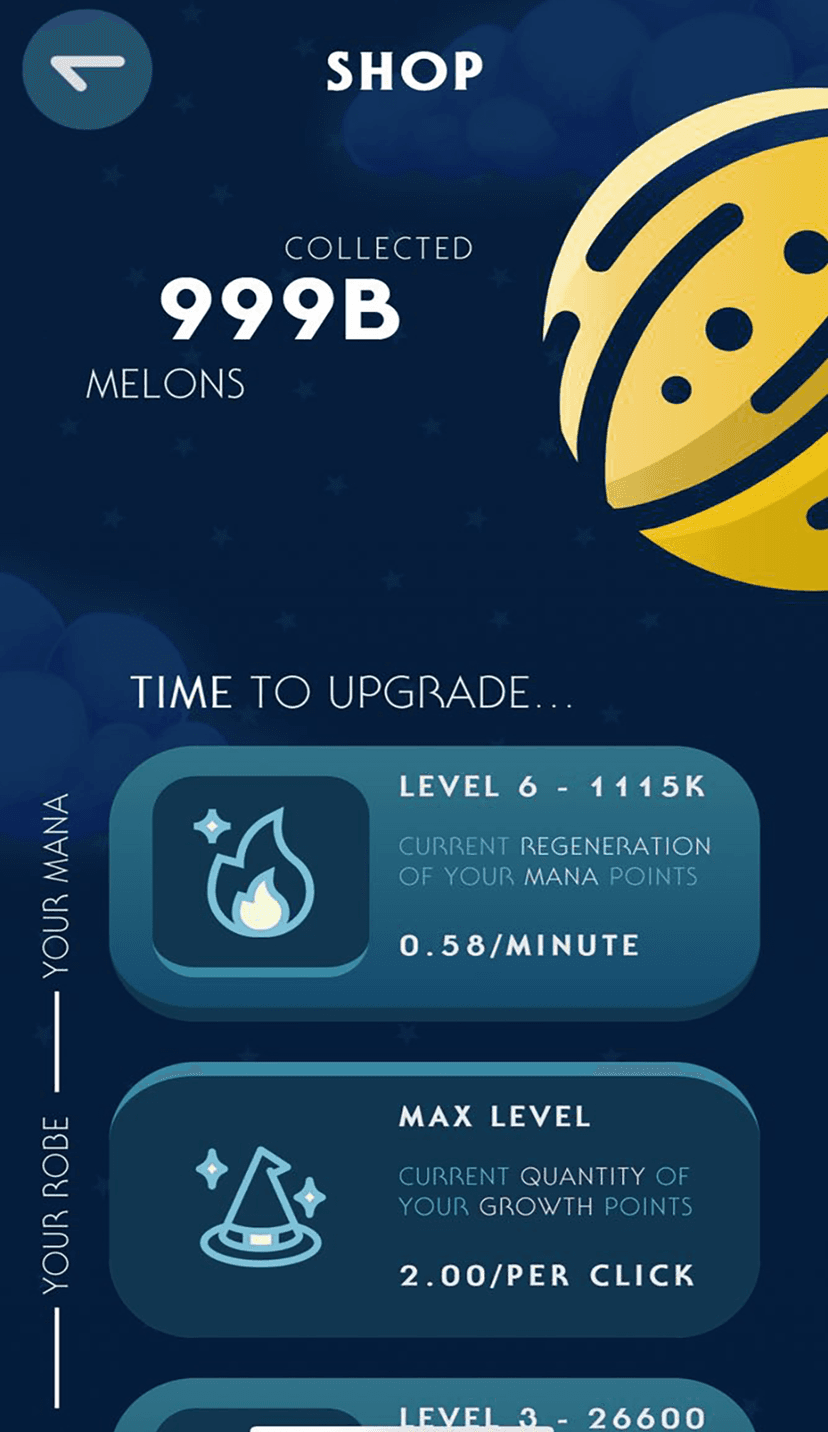 Melonia — кликер-игра, где вы выступаете в роли мага, выращивающего волшебные дыни при помощи помощников. Задача проста: собирать урожай, прокачивать персонажа и повышать эффективность фермы.