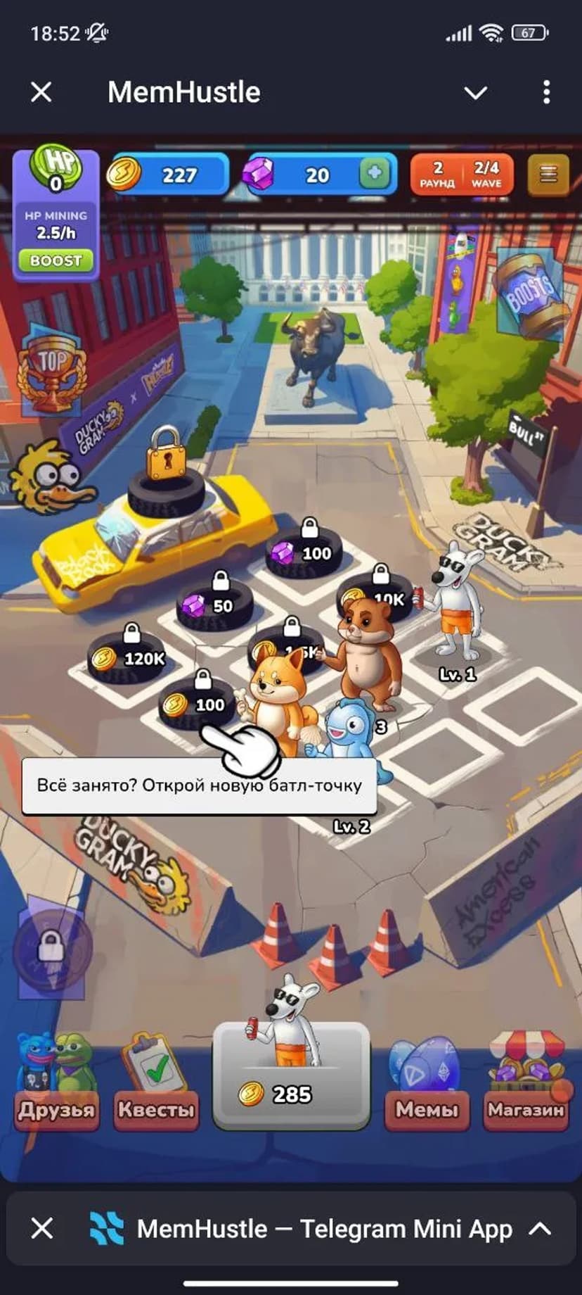 Загадки MemHustle: задачи, связанные с сюжетом или криптовалютной тематикой, требуют сообразительности и внимательности; успешное решение открывает внутриигровые бонусы и возможность получить токены на TON.