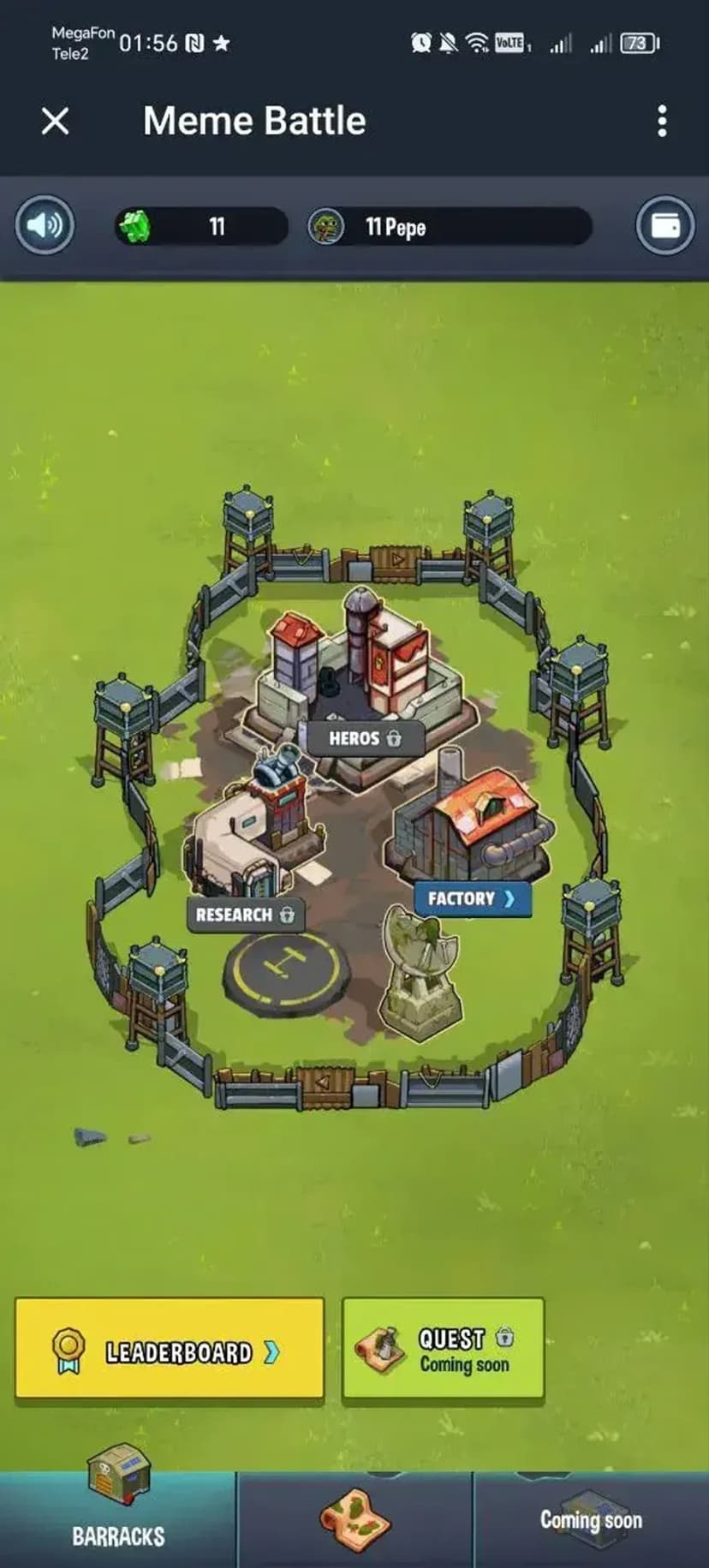 Meme Battle — динамичная Tower Defense-игра внутри Telegram: защищайте территорию, расставляя мем-героев с индивидуальными параметрами. У каждого героя свой рейтинг и вклад в общую статистику, что открывает тактические возможности для повышения вознаграждений.