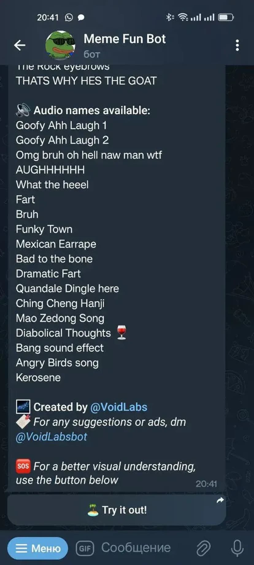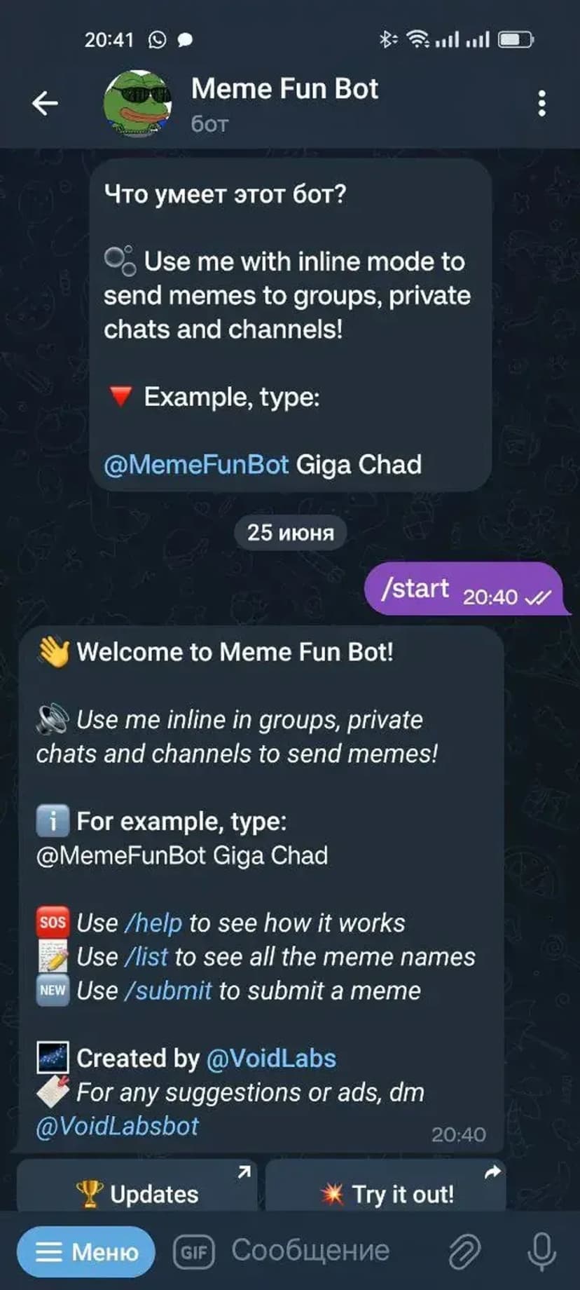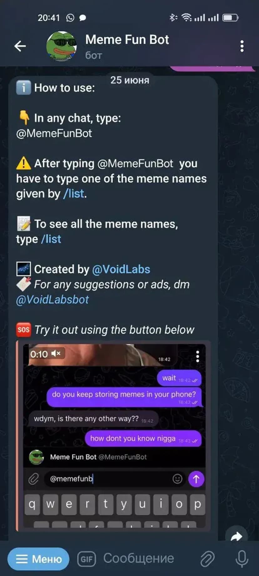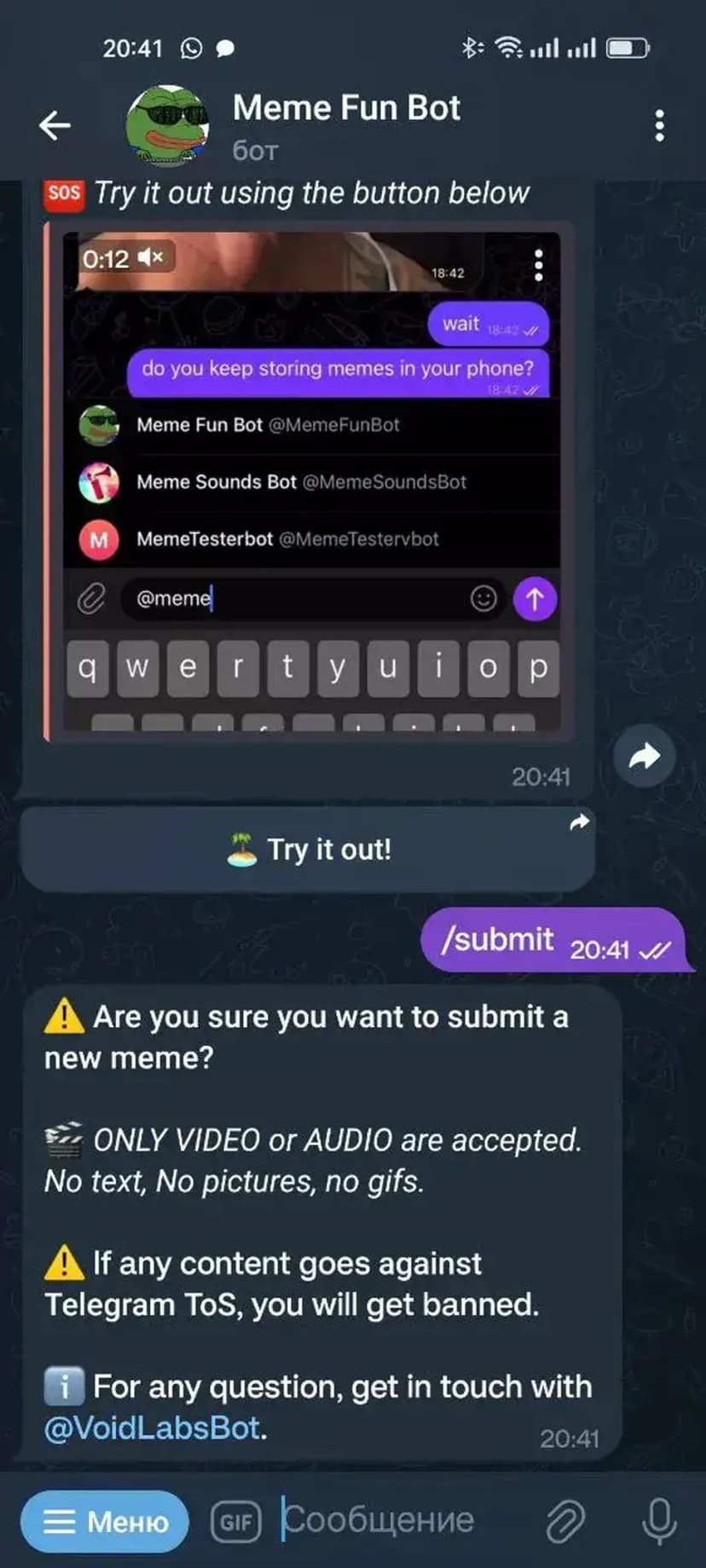 *Нажимая "Открыть в Telegram", вы перейдете к приложению Meme Fun Bot в мессенджере Telegram