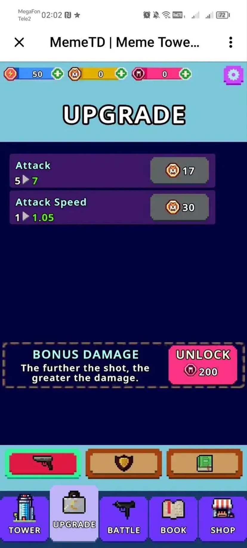 MemeTD — idle tower defense, где ваша задача — отразить атаки крипто-злодеев и сохранить виртуальные Meme-коины. Вы размещаете башни и повышаете их уровень; сами башни автоматически отбивают волны противников, а вы управляете апгрейдами и собираете выигрыши.
