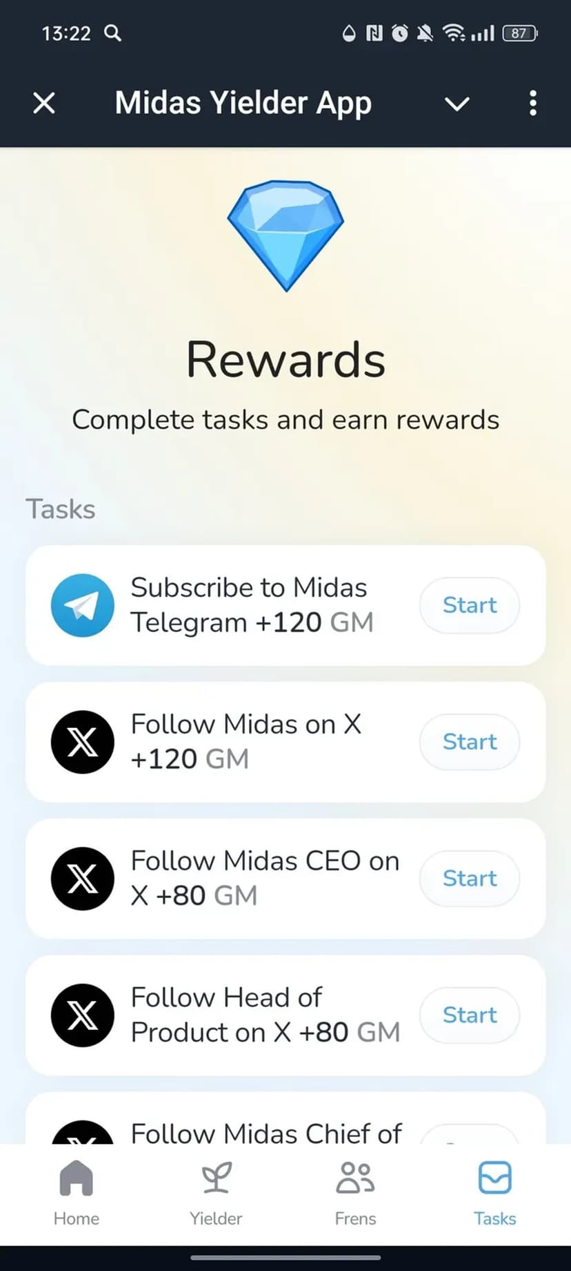 Midas Yielder App сочетает игровую систему вознаграждений и DeFi‑инструменты для получения реального дохода в криптовалютах. Приложение интегрируется с Telegram‑кошельком, позволяя управлять активами и стейкингом без сторонних сервисов.