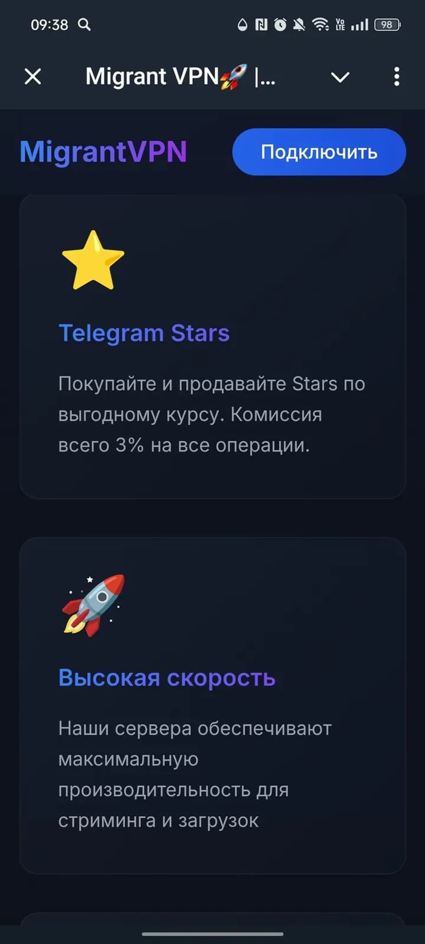 *Нажимая "Открыть в Telegram", вы перейдете к приложению Migrant VPN🚀 в мессенджере Telegram