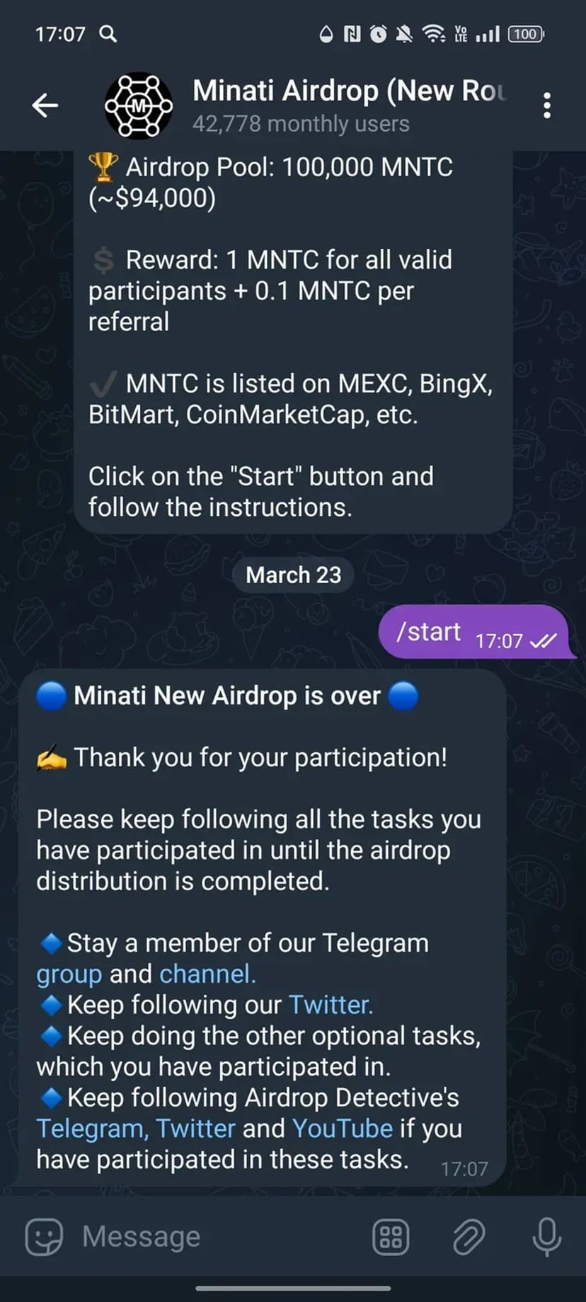 Совет: не отписывайтесь от каналов и не удаляйте выполненные задания до завершения распределения токенов, чтобы не потерять право на вознаграждение.