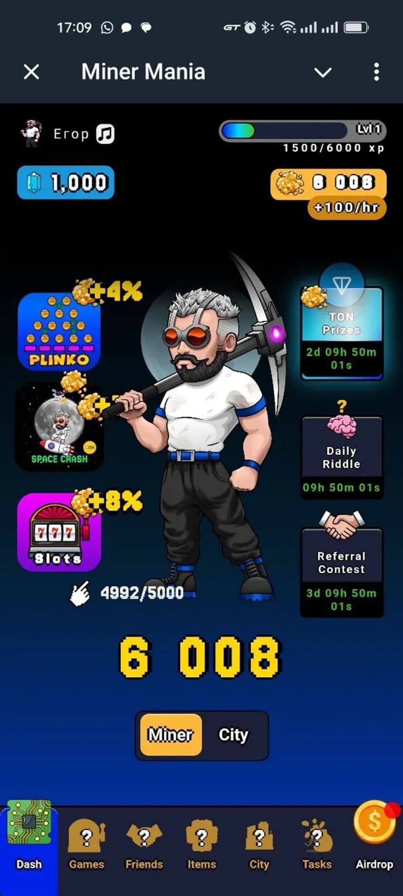 - Реферальная система: приглашённые игроки ускоряют добычу руды и участвуют в еженедельных конкурсах.