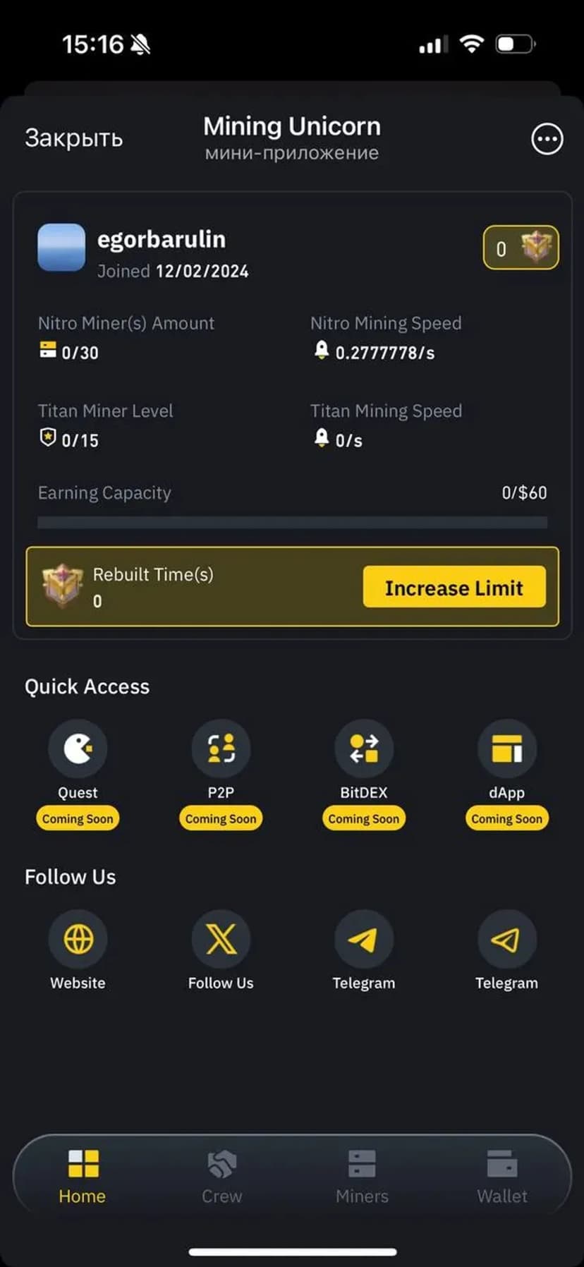 *Нажимая "Открыть в Telegram", вы перейдете к приложению Mining Unicorn в мессенджере Telegram