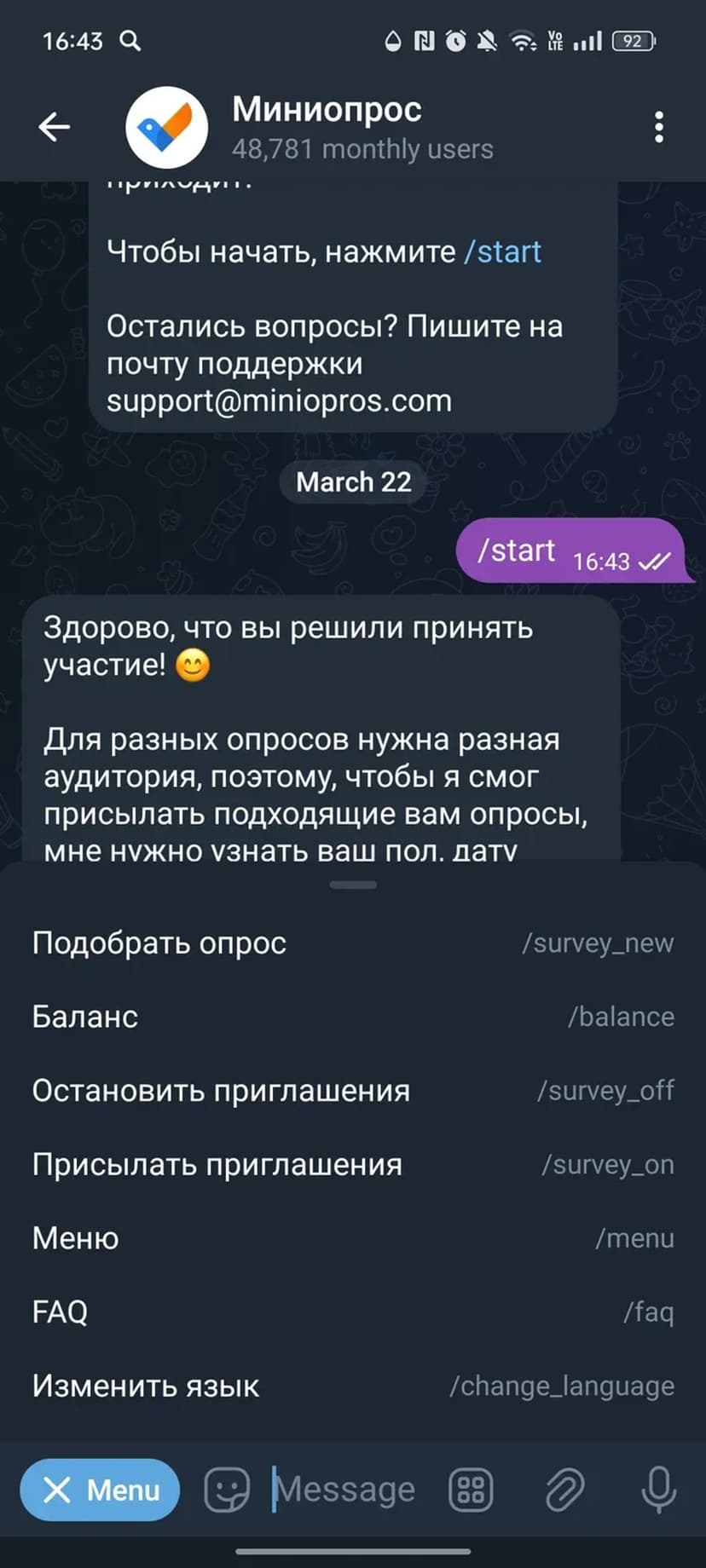 *Нажимая "Открыть в Telegram", вы перейдете к приложению Миниопрос в мессенджере Telegram