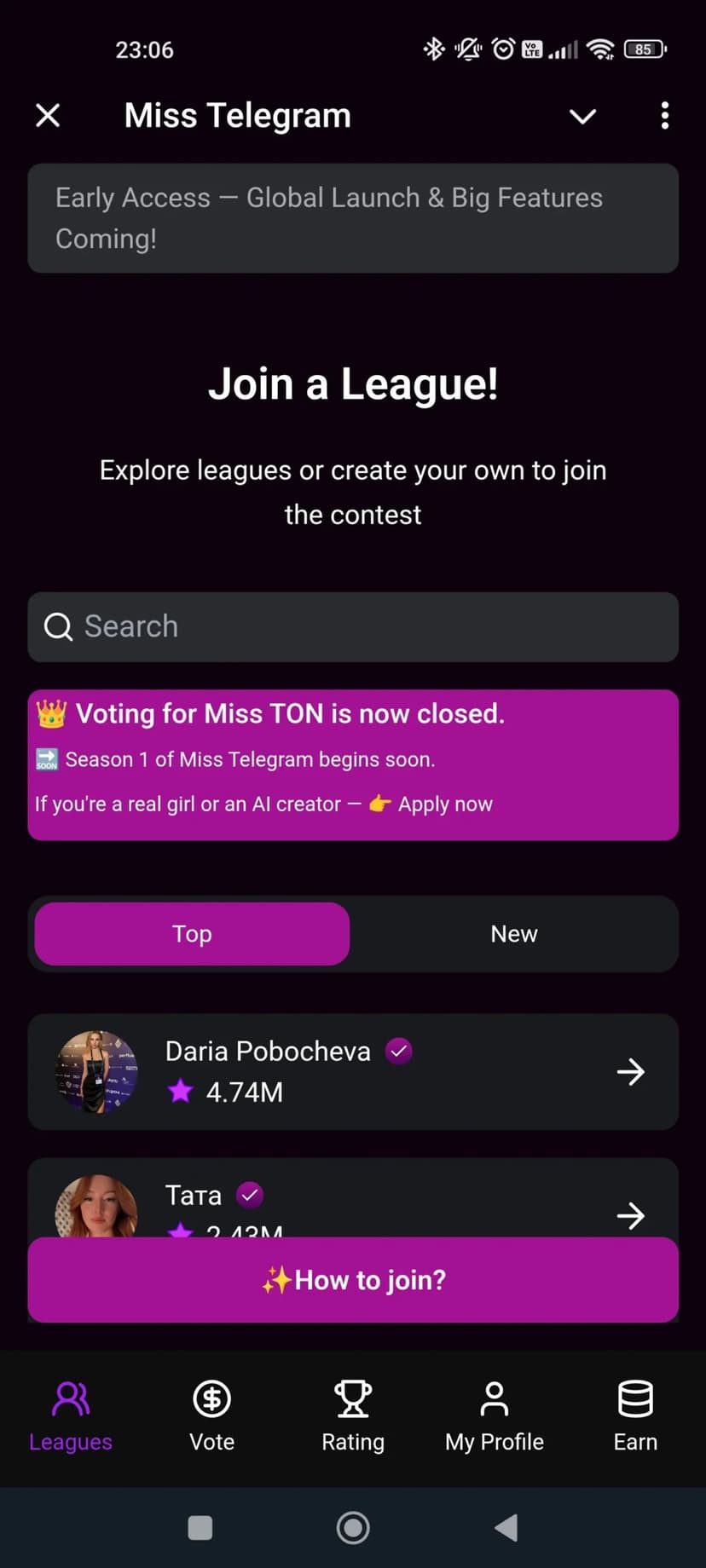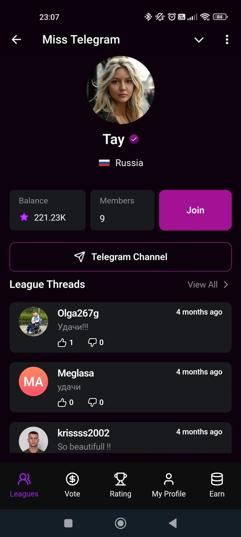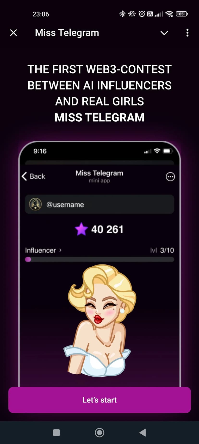 Miss Telegram — глобальный конкурс красоты, где реальные участницы соревнуются с ИИ‑моделями. Платформа объединяет социальное взаимодействие, игровые механики и блокчейн‑элементы: пользователи голосуют, поддерживают конкурсанток донатами и зарабатывают токены за активность.