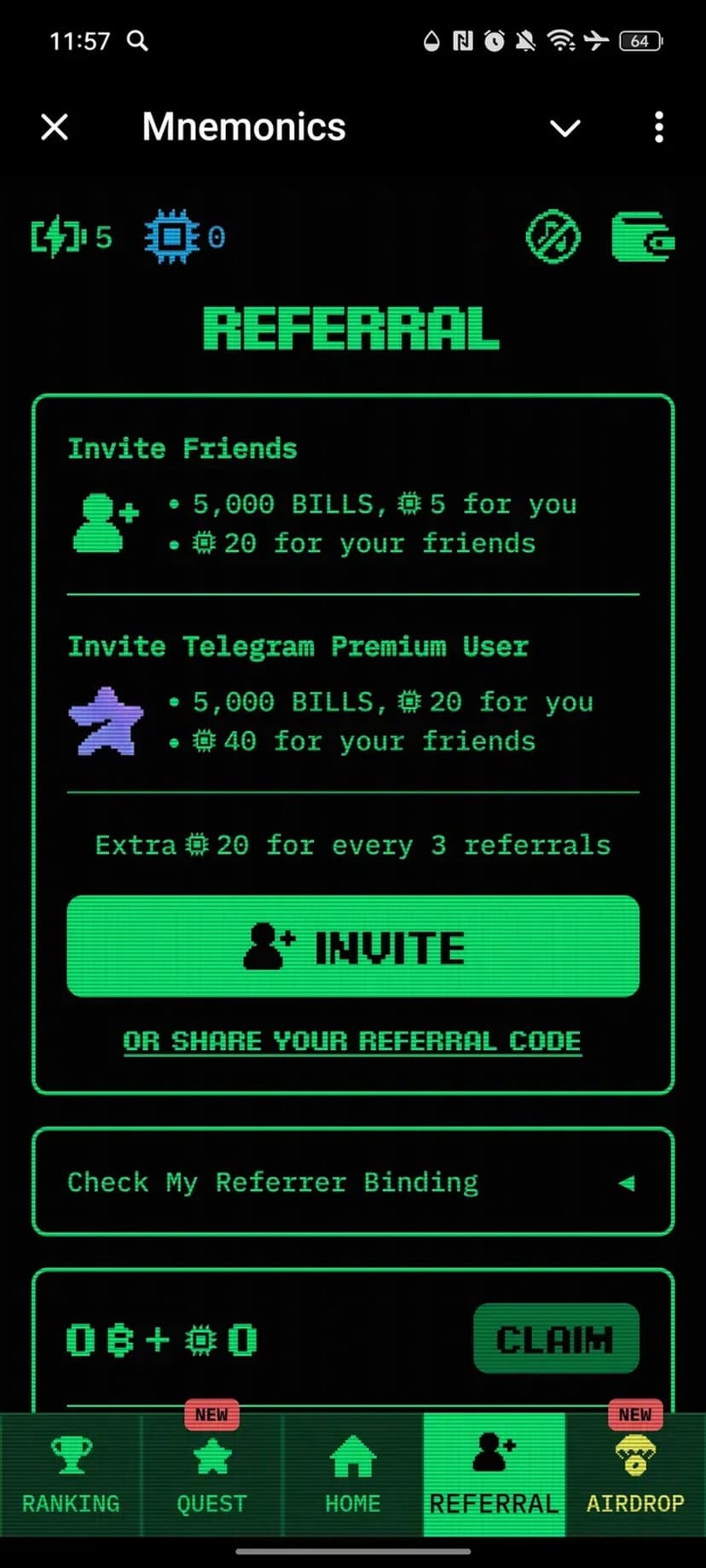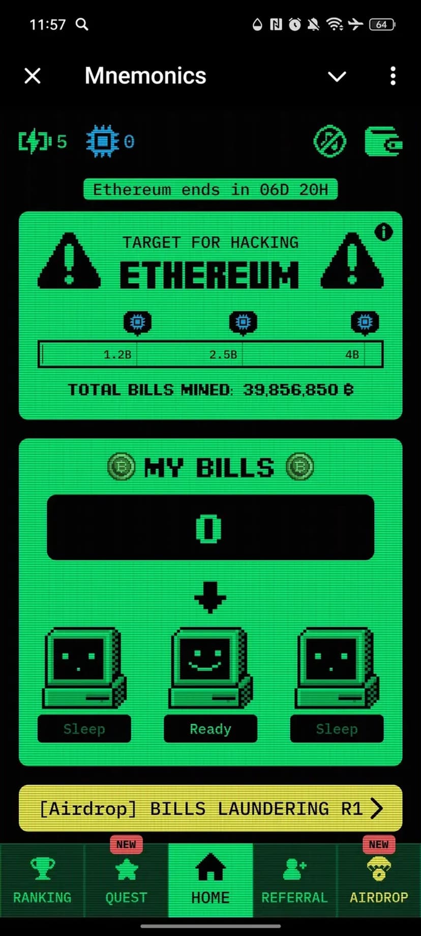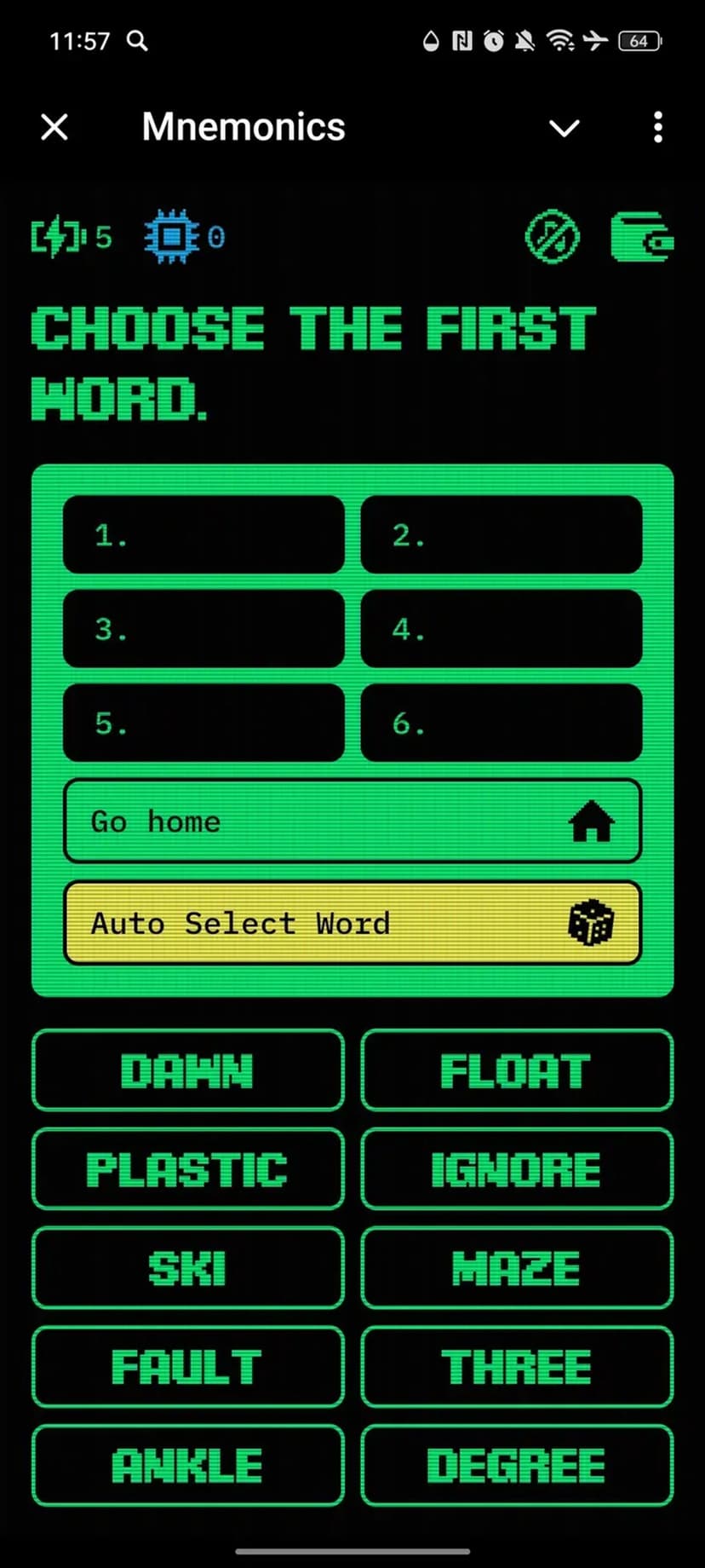 Mnemonics — телеграм-бот в формате play-to-earn, совмещающий элементы расшифровки и симуляции «взлома» криптокошельков. Игроки выполняют игровые задания, получают внутриигровые монеты и имеют возможность участвовать в аирдропах.