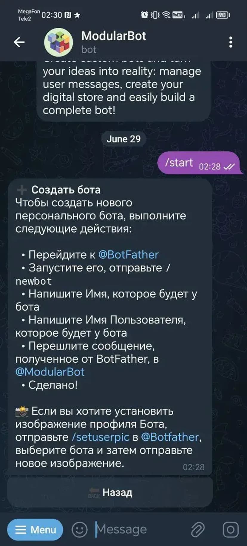 *Нажимая "Открыть в Telegram", вы перейдете к приложению ModularBot в мессенджере Telegram