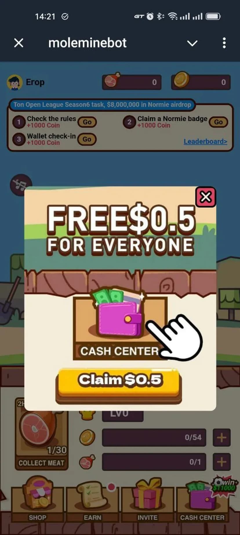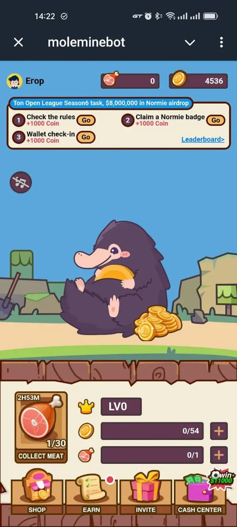 Moleminebot — play-to-earn проект в Telegram, где основная механика — уход за виртуальным питомцем и выполнение игровых заданий, за которые начисляется внутренняя валюта Cash Center.