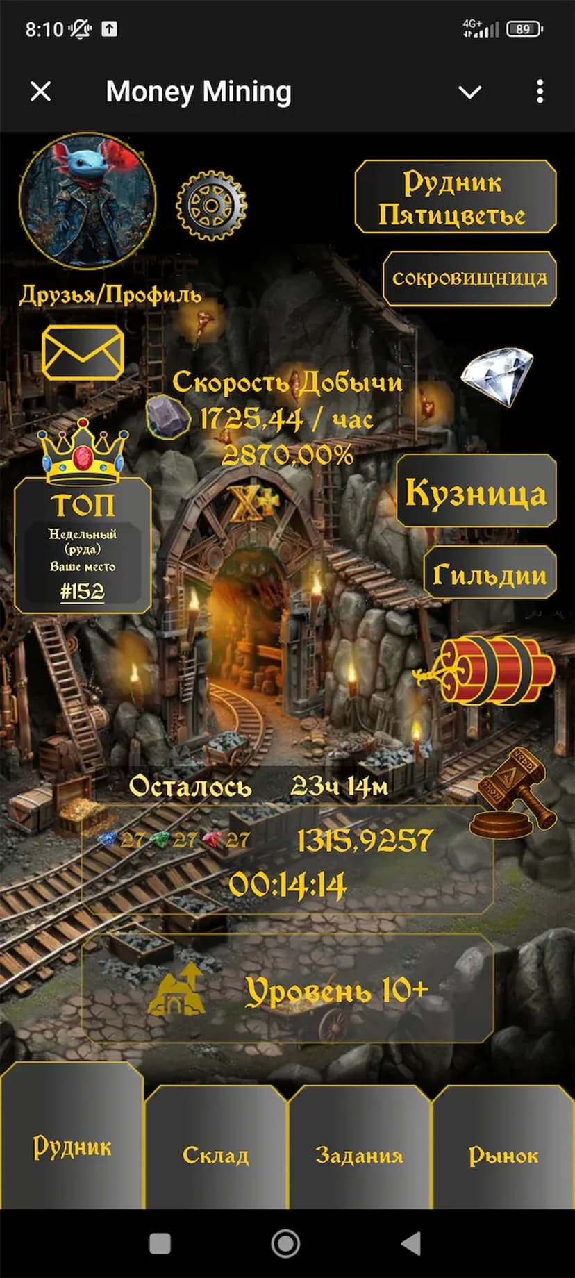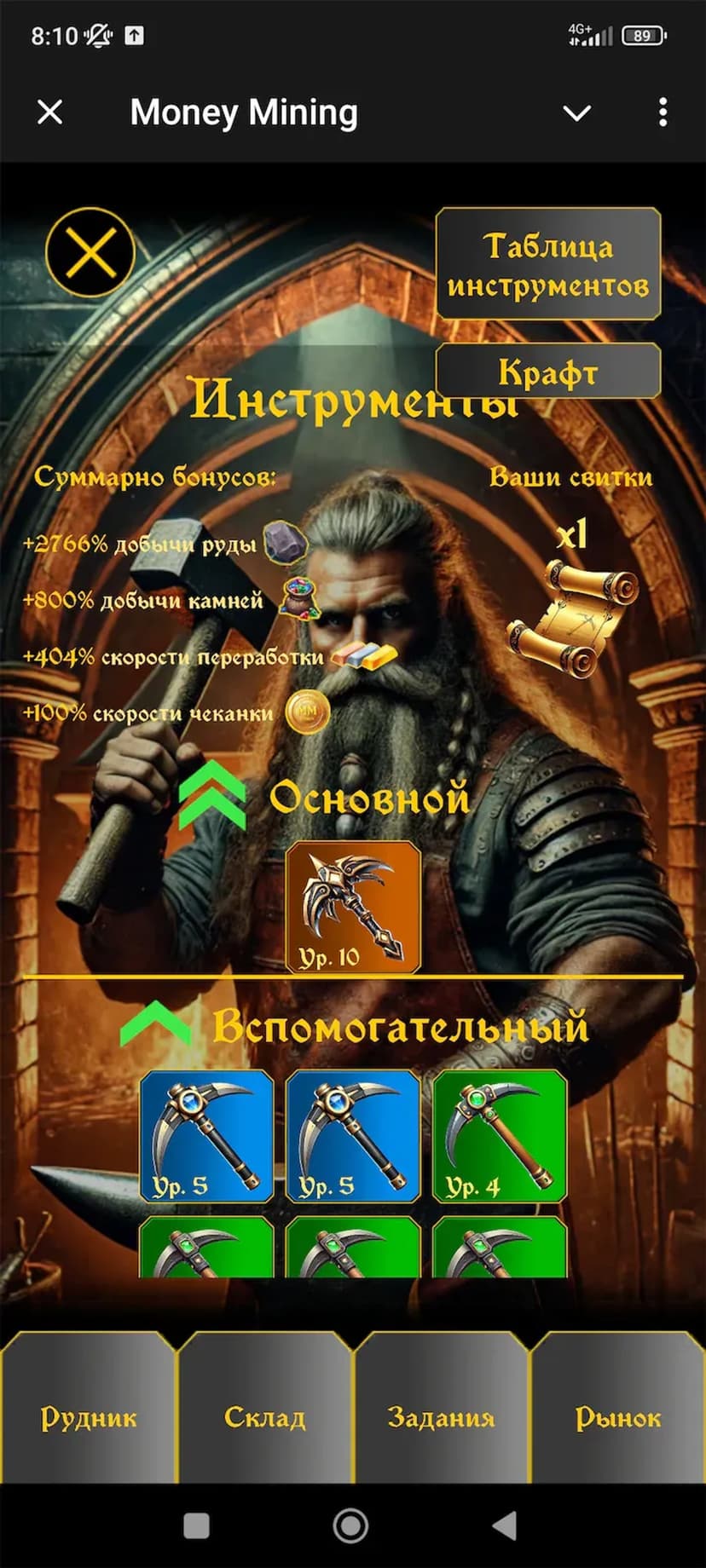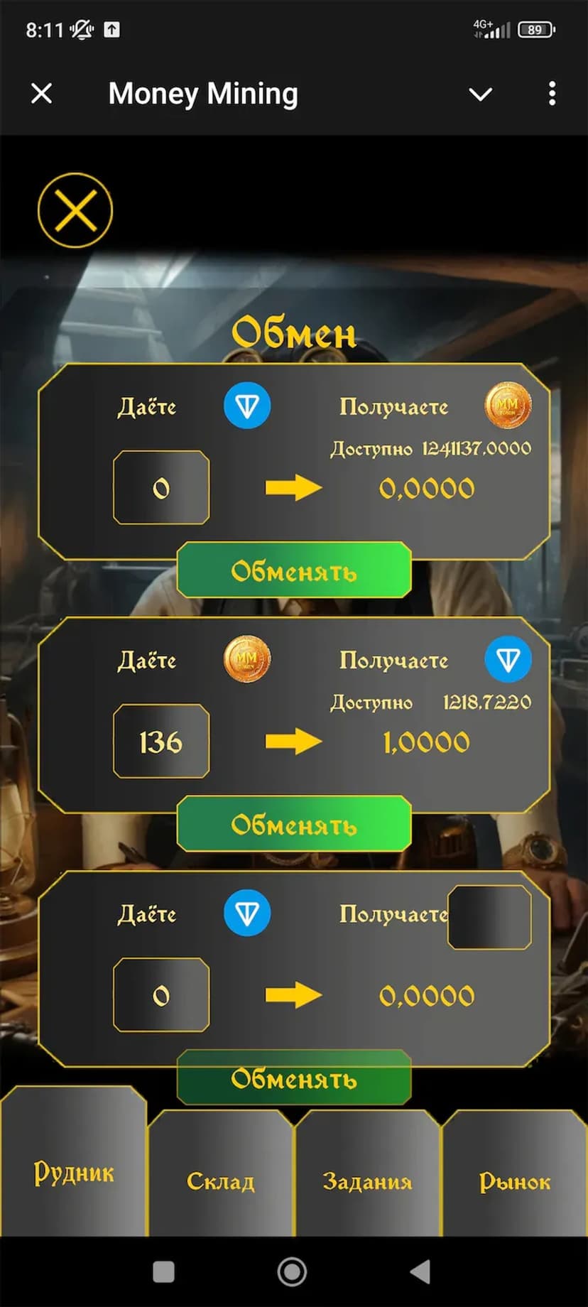 Развивай шахту, собирай ресурсы и выводи заработок в TON через встроенный маркет.